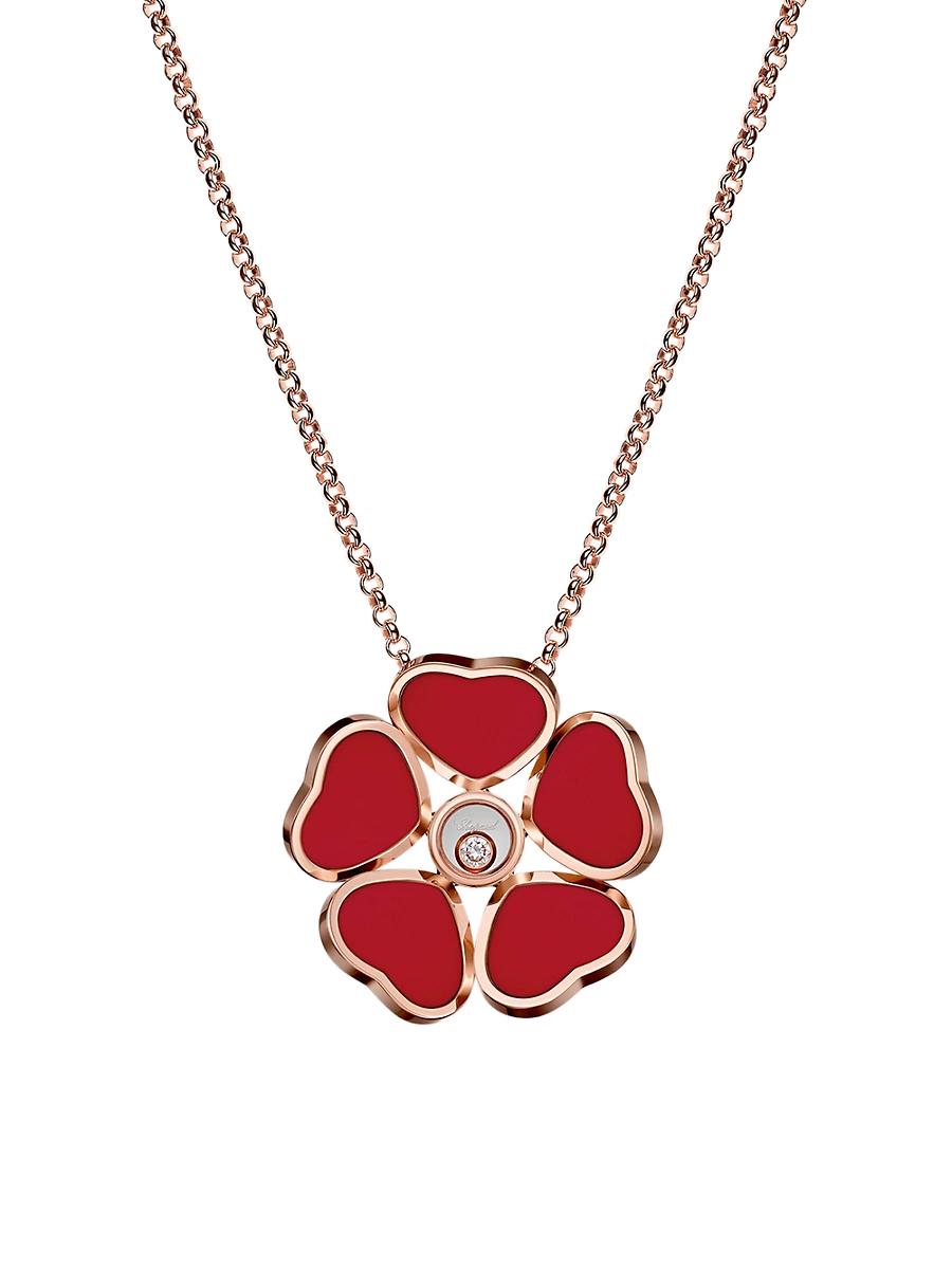 From the Happy Diamonds Collection. Symbolic flower pendant necklace with signature floating diamond. Diamonds, 0.05 tcw 18K rose gold Red stone Lobster clasp Imported SIZE Length, about 17.75 ABOUT THE BRAND In 1860, artisan watchmaker Louis-Ulysse Chopard founded the renowned jewelry brand in Sonvilier, Switzerland. The company is known for its legendary Swiss watches and classic high fine jewelry designed to last a lifetime. Fine Jewelry - Chopard Watches And Jewe > Chopard > Saks Fifth Avenue > Barneys. Chopard. Color: Red.
