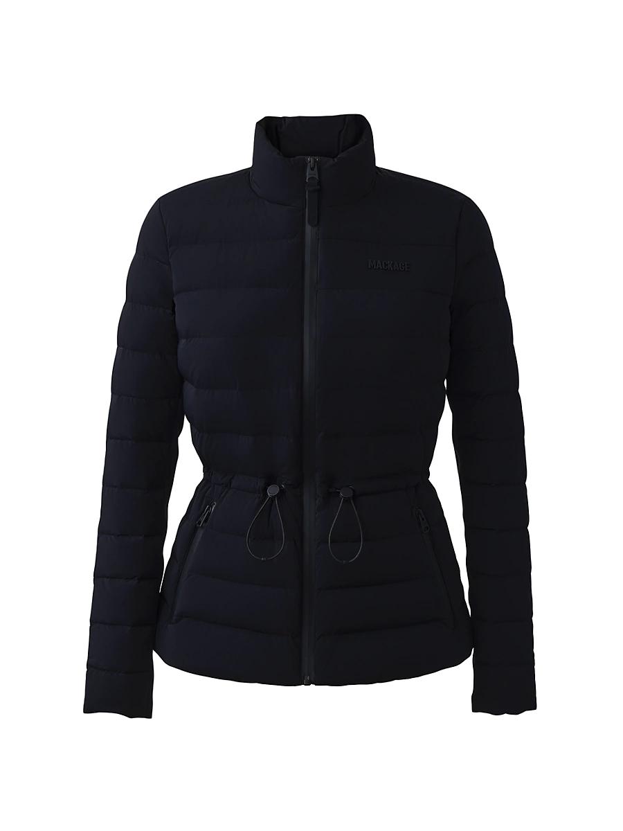 Mackages Jacey jacket spotlights a cinching drawcord waist and insulated zip waist pockets. This puffer style is complete with a tonal logo detail at the chest and goose down filling. Stand collar Logn sleeves, ribbed cuffs Drawcord waist Side-zip pockets Front-zip closure 82% nylon/18% elastane Filling: 90% goose down/10% goose waterfowl feathers Dry clean Imported SIZE & FIT About 24 from shoulder to hem Model measurements: 510 tall Model is wearing a US size Small ABOUT THE BRAND Eran Elfassy, inspired by his brothers leather expertise, founded Mackage in 1999 in Montreal, Canada. Two years later, with designer Elisa Dahan, they created a comprehensive outerwear brand offering everything from fine leather jackets to tailored wool coats and down parkas. Designed to be both comfortable and warm, the brands high-performance gear also provides protection in freezing temperatures. Outerwear And Swimwear - Down > Mackage > Saks Fifth Avenue > Barneys. Mackage. Color: Black. Size: Medium.