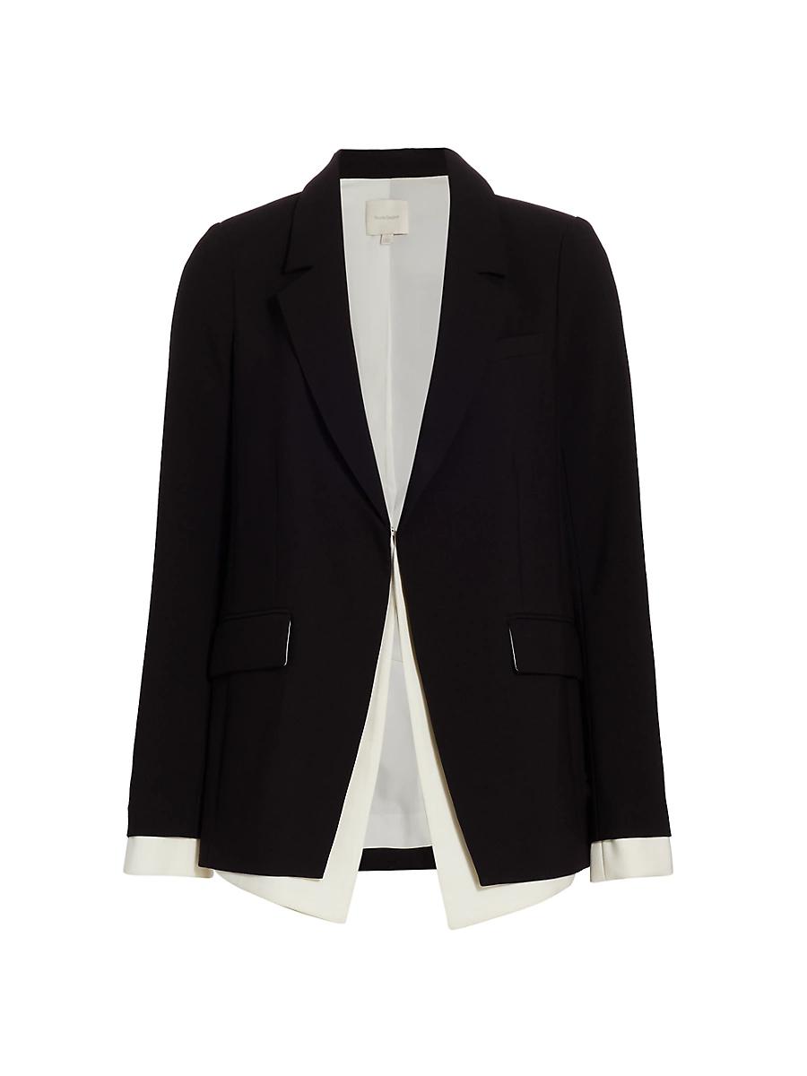 Favorite Daughters Kelly blazer flaunts a front hook closure and contrasting trim at the lower half for a layered look. Notch lapels Long sleeves Chest welt pocket Side flap pockets Front hook-and-eye closure 74% polyester/20% rayon/6% elastane Hand wash Imported SIZE & FIT About 31.25 from shoulder to hem Model measurements: 510 tall Model is wearing a US size Small. Contemporary Sportswear - Casual Separates > Favorite Daughter > Saks Fifth Avenue > Barneys. Favorite Daughter. Color: Black Multi. Size: Large.