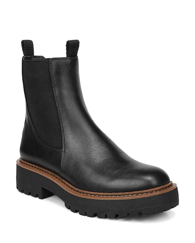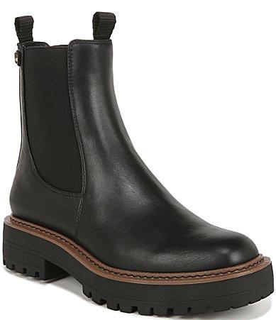 In this seasons must-have silhouette, these rich leather combat boots are set atop a chunky lug sole and exude a utilitarian charm. Leather upper Square toe Pull-on style Elasticized sides Synthetic lining Synthetic sole Imported SIZE Block heel, 1.5 (38mm) Shaft, 5.5. Womens Shoes - Contemporary Shoes > Sam Edelman > Saks Fifth Avenue > Barneys. Sam Edelman. Color: Black. Size: 7.