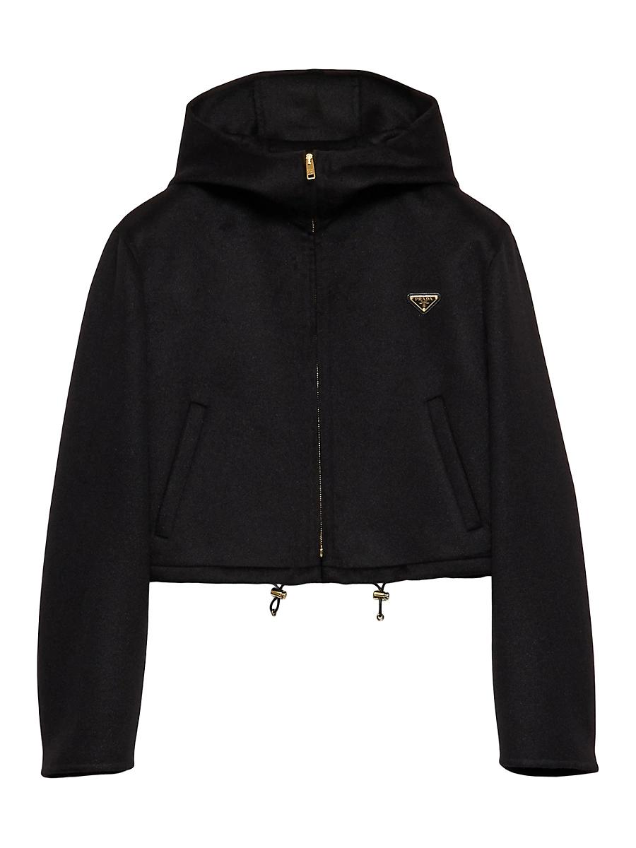 This fine cashgora blouson jacket with refined simplicity is characterized by a silhouette with clean lines and sporty details. Stand-up collar Long sleeves Zipper closure Welt pockets Unlined Enameled metal triangle logo on a Saffiano base 40% angora goat hair, 5% cashgora, 55% fleece wool Imported. Lsd Rtw - Prada Rtw > Prada > Saks Fifth Avenue > Barneys. Prada. Color: Black. Size: 6.