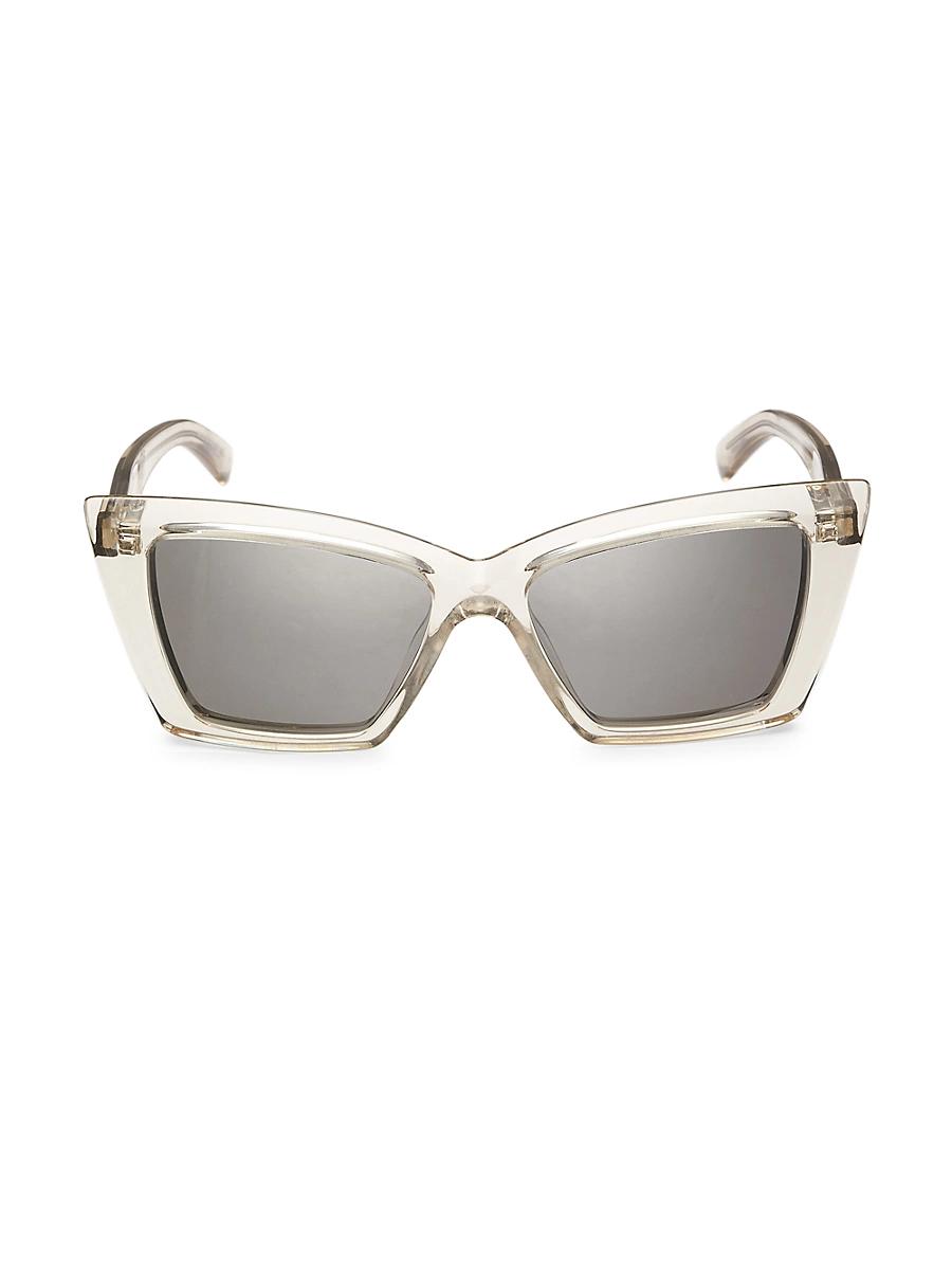 From the Lignes Pointues Collection. Crafted of translucent acetate, these Saint Laurent sunglasses are cut in an angled cat-eye shape. 100% UV protection Mirrored lenses Includes case and cleaning cloth Acetate/nylon Made in Italy SIZE 54mm lens width 16mm bridge width 140mm temple length Please note: Lens replacement is optional. ABOUT THE BRAND Founded in 1961, Yves Saint Laurents groundbreaking styles have become iconic cultural and artistic references, and its founder, the couturier Yves Saint Laurent, secured a reputation as one of the twentieth centurys foremost designers. Part of the Kering Group, the House kept true to its identity of absolute modernity and fashion authority. Under the creative direction of Anthony Vaccarello, appointed in April 2016, the House offers a broad range of womens and mens ready-to-wear products, leather goods, shoes, jewelry and eyewear. It is also a major force in fragrances and cosmetics. Soft Accessories - Sunglasses > Saint Laurent > Saks Fifth Avenue > Barneys. Saint Laurent. Color: Translucent Beige Grey.