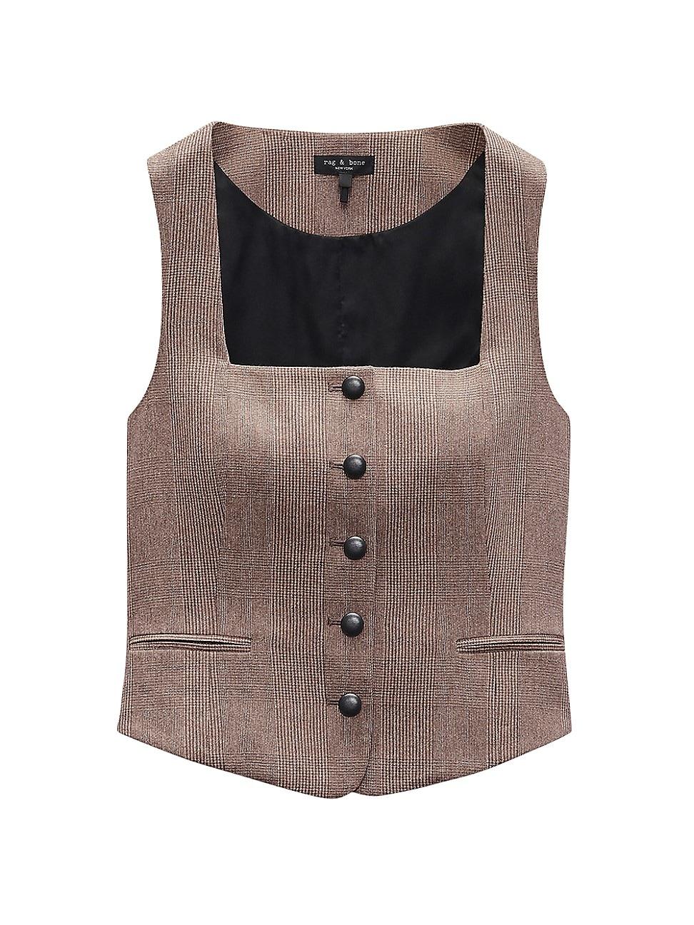 Crafted of stretch wool, rag & bones Mariana vest showcases a sharp squareneck, button-front closure, and sleeveless silhouette. Square neck Sleeveless Front besom pockets Button-front closure 98% wool/2% spandex Dry clean Imported SIZE & FIT About 20.75 from shoulder to hem Model measurements: 510 tall Model is wearing a US size 4 ABOUT THE BRAND In 2002, rag & bone founder Marcus Wainwright combined his British heritage with a downtown-New York aesthetic to set the tone for the label. At the heart of the edgy-yet-laid-back brand is its focus on quality craftsmanship and attention to detail. The epitome of cool, off-duty style, its no wonder the signature second-skin denim is favored by many. Contemporary Sportswear - Rag And Bone > Rag & Bone > Saks Fifth Avenue > Barneys. rag & bone. Color: Camel Plaid. Size: 10.