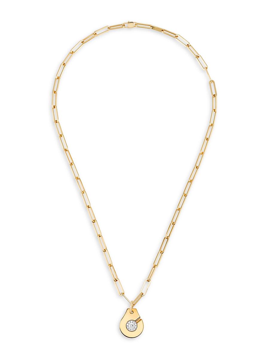 From the Menottes Dinh Van Collection. Made of 18K yellow gold, this eye-catching necklace features a white-diamond-embellished handcuff pendant suspended from an elongated oval-link chain. Diamonds, 0.4 tcw 18K yellow gold Lobster clasp Imported SIZE Length, about 17.72 maximum with extender. Fine Jewelry - Designer Jewelry A > Dinh Van > Saks Fifth Avenue > Barneys. Dinh Van. Color: Yellow Gold. Size: 45.