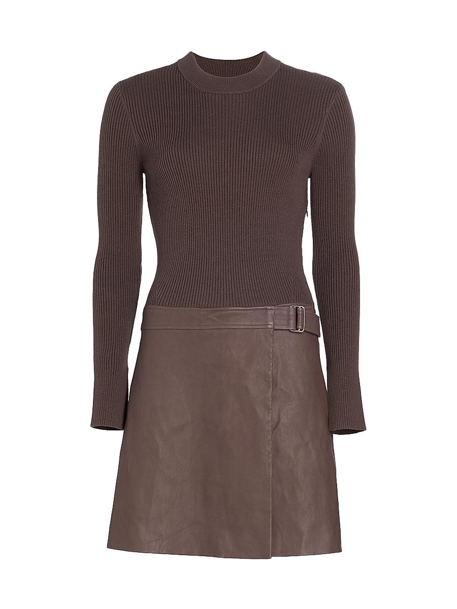 Derek Lam 10 Crosbys Nancy minidress showcases a mix media design, pairing soft leather and rib-knit cotton blend, this piece features a crewneck and adjustable belt. Crewneck Long sleeves Adjustable belt Pulls over 97% cotton/3% spandex Trim: 100% leather Lining: 100% polyester Dry clean Imported SIZE & FIT About 34 from shoulder to hem Model measurements: 510 tall Model is wearing a US size 4 ABOUT THE BRAND Eight years after founding his eponymous brand, Derek Lam launched Derek Lam 10 Crosby in 2011, named after the address of his New York City office. Staying true to his downtown aesthetic, Lam designs feminine, relaxed pieces for all occasions. Contemporary Sportswear - Derek Lam 10 Crosby > Derek Lam 10 Crosby > Saks Fifth Avenue > Barneys. Derek Lam 10 Crosby. Color: Dark Truffle. Size: 14.