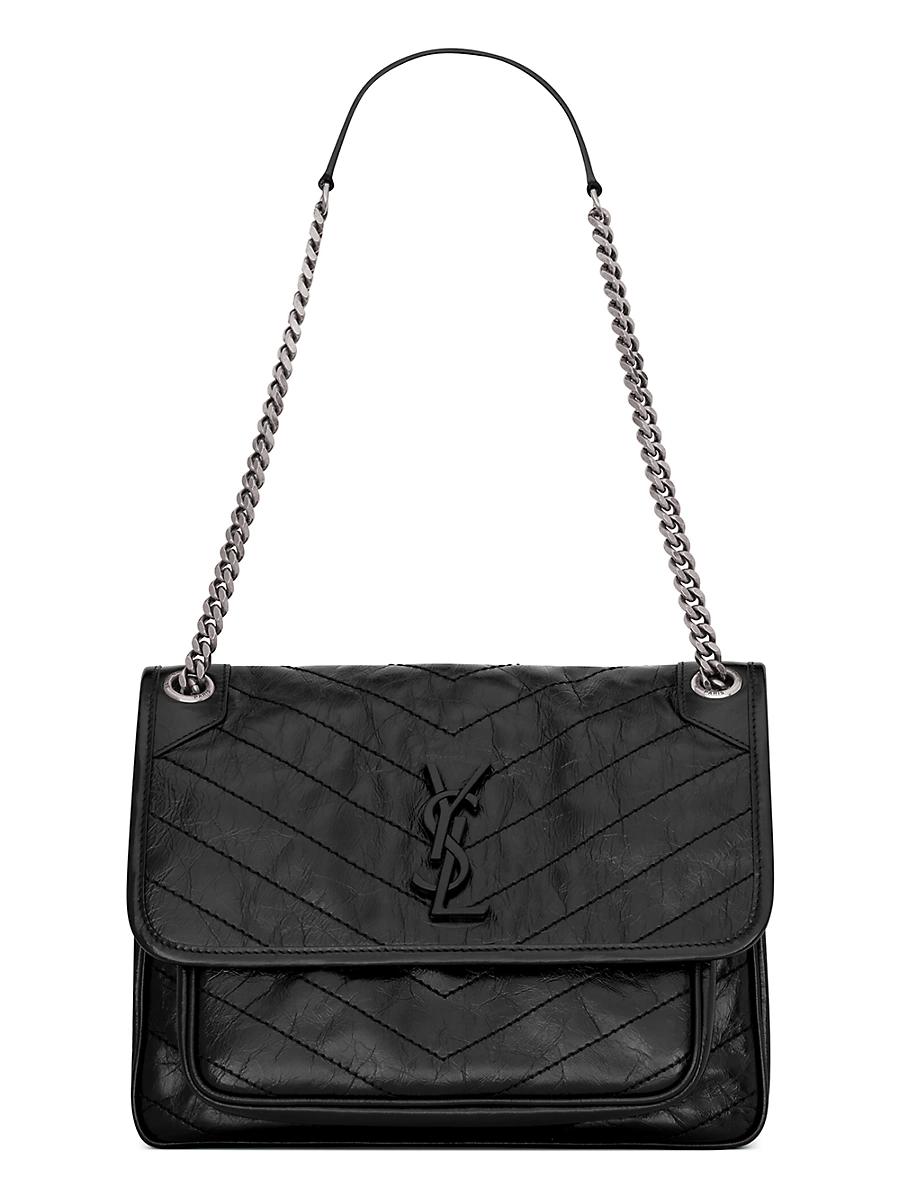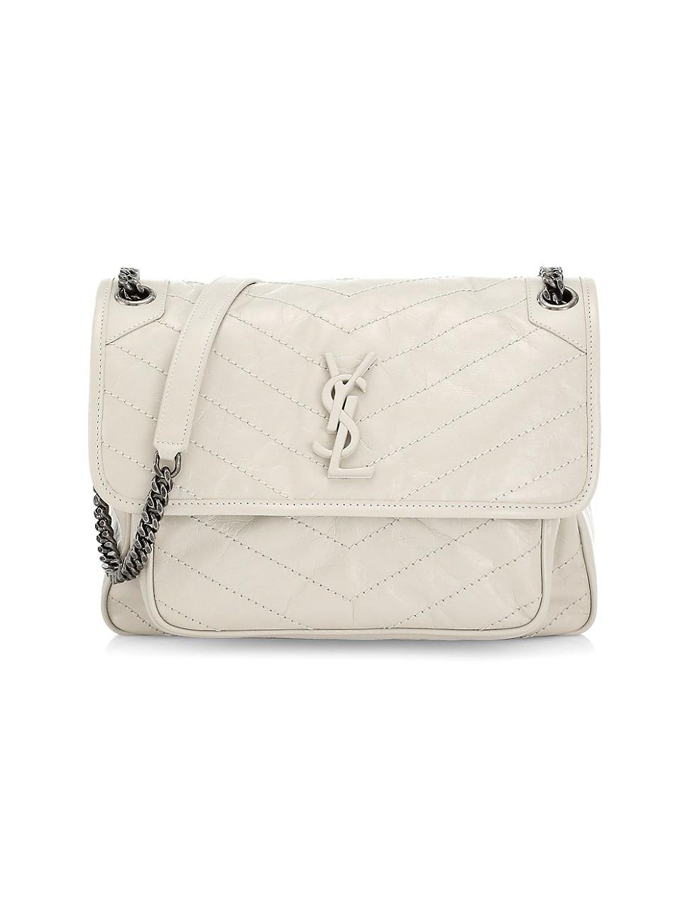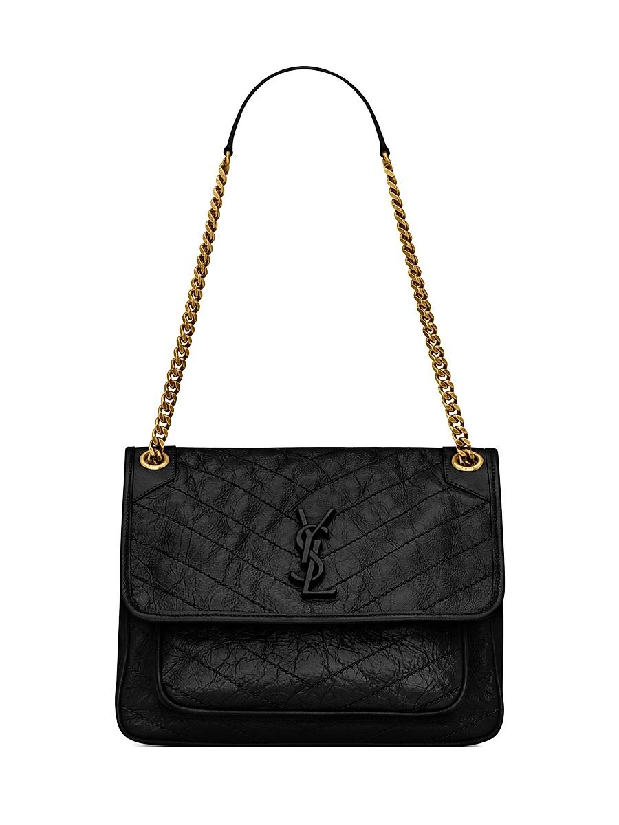 Bag with a flap, decorated with leather-covered Cassandre and chevron-quilted overstitching. Bronze-tone metal hardware Grosgrain lining Magnetic snap closure Interior: one main compartment, one flat pocket, one zip pocket, one open compartment at the front Exterior: one magnetic flat pocket at the back SIZE Dimensions: 28 x 20 x 8.5 cm / 11W x 7.8H x 3.3H Shoulder strap drop: 50 cm/ 19.6 Folded shoulder strap drop: 28 cm / 11. Lsd Handbags - Saint Laurent > Saint Laurent > Saks Fifth Avenue > Barneys. Saint Laurent. Color: Loden Green.