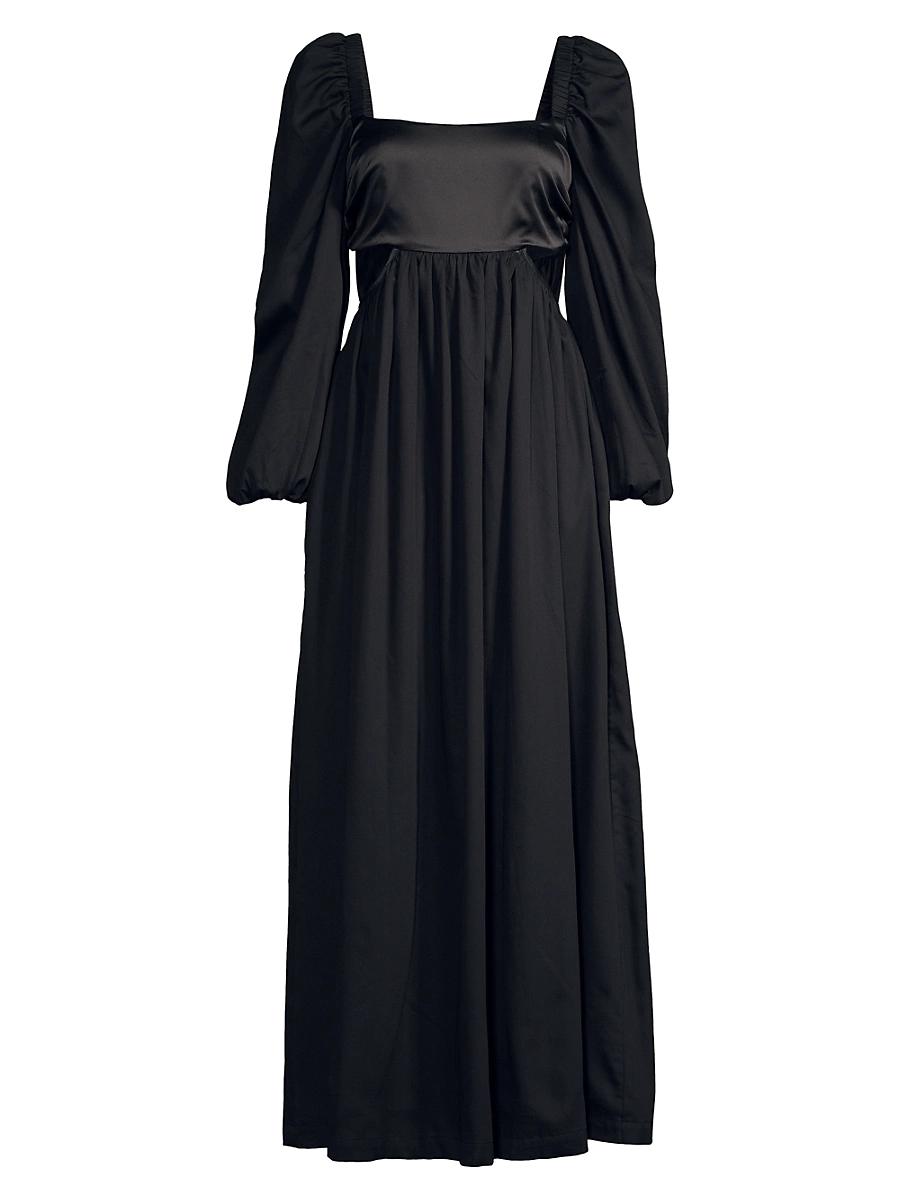 Hansen + Gretels balloon-sleeve Orbison maxi dress offers a satin bodice and sleek side cut outs. Square neck Long balloon sleeves with elasticized cuffs Side cut outs Open square back Back hook-and-eye closures Contrast: 97% polyester/3% elastane 100% cotton Hand wash Imported SIZE & FIT About 57.5 from shoulder to hem Model measurements: 510 tall Model is wearing a US size Small. Dress Collections - Contemporary Evening > Hansen + Gretel > Saks Fifth Avenue > Barneys. Hansen + Gretel. Color: Black. Size: XS.