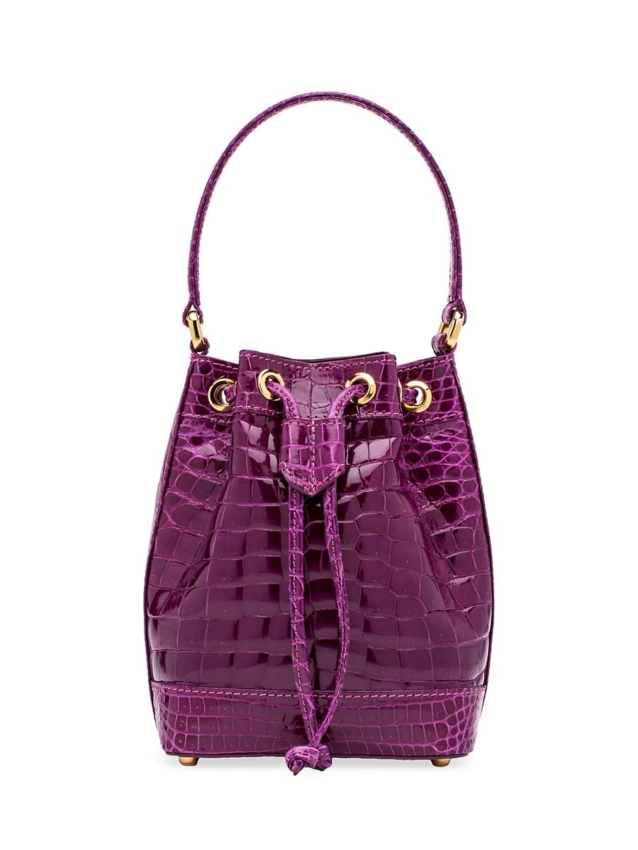 Handcrafted in Italy, the Petite Isla Tote is a drawstring bucket bag with handstitched tonal panels. No closure Additional shoulder strap Brass hardware covered in 2 Microns of Gold Interior zippered pocket and two front pockets American Alligator Lined in the highest quality calf leather Made in Italy SIZE 5.5 W X 7 H X 3.5 D 41.5 strap length 1 1/2 lbs. Lsd Handbags - Handbag/accessories Lsd > Lana Marks > Saks Fifth Avenue > Barneys. Lana Marks. Color: Purple.