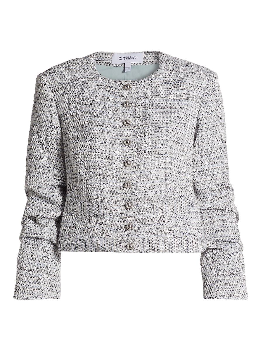 Derek Lam 10 Crosbys Piera jacket is crafted of tweed and styled with ruched sleeves. Round neck Ruched bracelet sleeves Front welt pockets Button-front closure 69% polyester/28% cotton/3% nylon Lining: 100% polyester Dry clean Imported SIZE & FIT About 19.5 from shoulder to hem Model measurements: 510 tall Model is wearing a US size 4 ABOUT THE BRAND Eight years after founding his eponymous brand, Derek Lam launched Derek Lam 10 Crosby in 2011, named after the address of his New York City office. Staying true to his downtown aesthetic, Lam designs feminine, relaxed pieces for all occasions. Contemporary Sportswear - Derek Lam 10 Crosby > Derek Lam 10 Crosby > Saks Fifth Avenue > Barneys. Derek Lam 10 Crosby. Color: Blue Ivory. Size: 6.