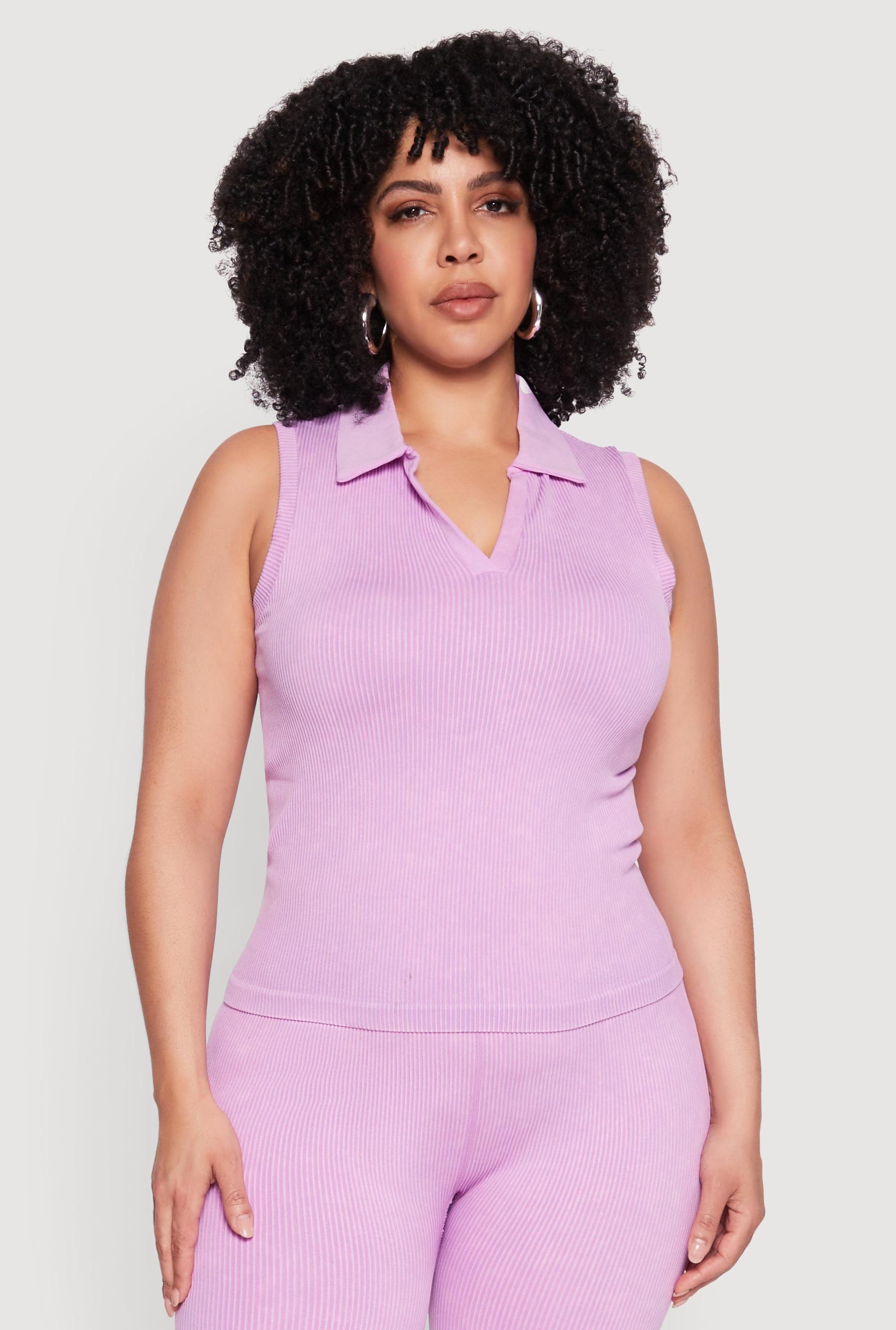 Upgrade your wardrobe with the Plus Size Mineral Wash Ribbed Knit Johnny Collar Top, the perfect blend of comfort and style. Designed with a timeless silhouette and a classic fit, this sleeveless tank top is a versatile piece that effortlessly elevates your casual looks. The mineral wash finish adds a trendy, laid-back vibe, making it your go-to choice for everyday wear or chill sets. Whether youre lounging at home or out with friends, this top is all about feeling confident and looking fabulous. Made from soft ribbed knit material for all-day comfort Features a stylish Johnny collar for a chic touch Classic fit with a timeless silhouette that flatters every body Sleeveless design perfect for layering or wearing solo Mineral wash finish adds a trendy, worn-in look Ideal for casual sets and everyday wear Model Pictured Wearing Size 1XHeight 58, Bust 36, Waist 35, Hips 47Fits True To SizeContent and Care Material: 95% Nylon, 5% Spandex Care Instructions: Machine Wash, Tumble Dry Country Of Origin: China Rainbow Item Number 1850060584606