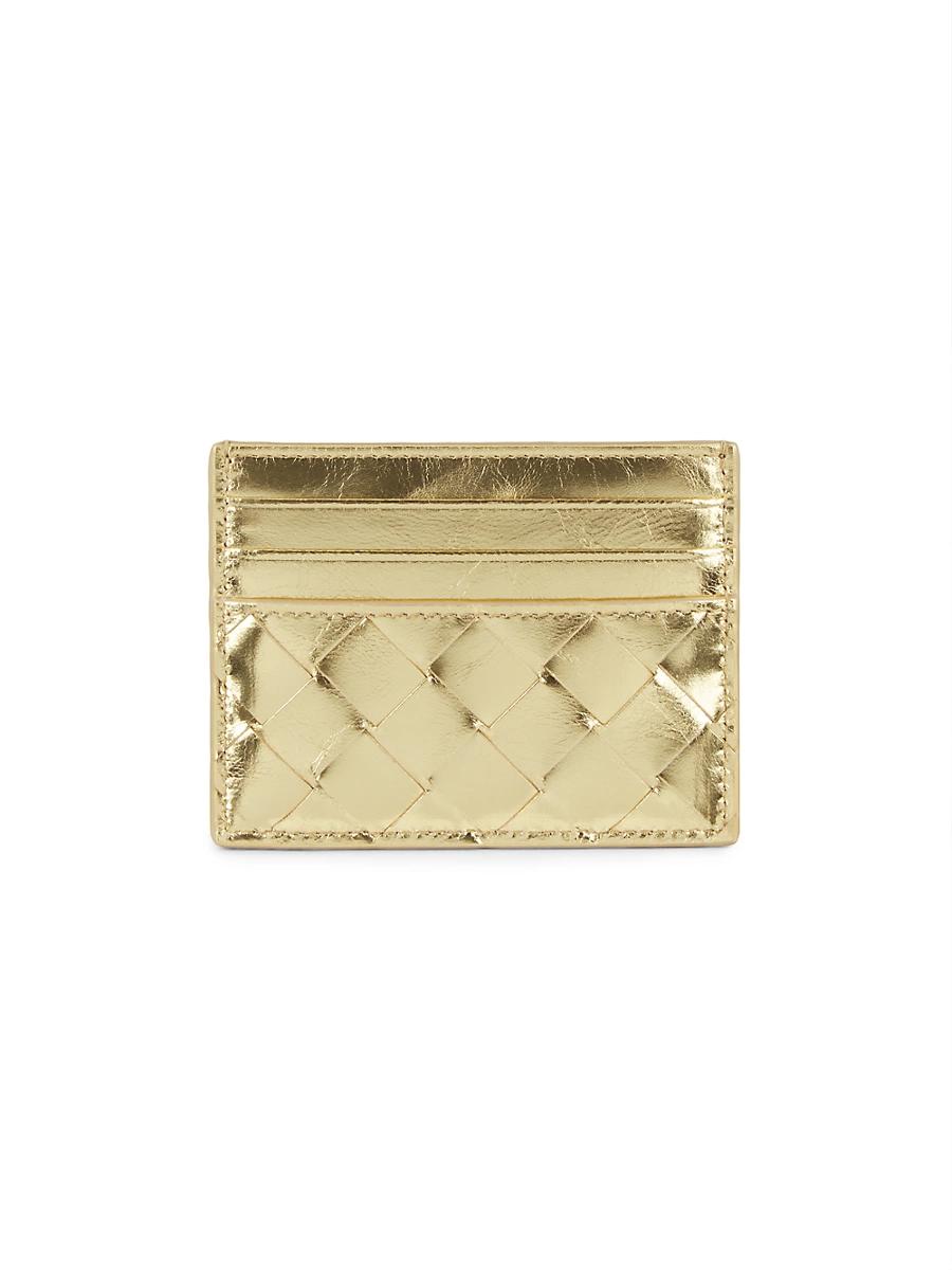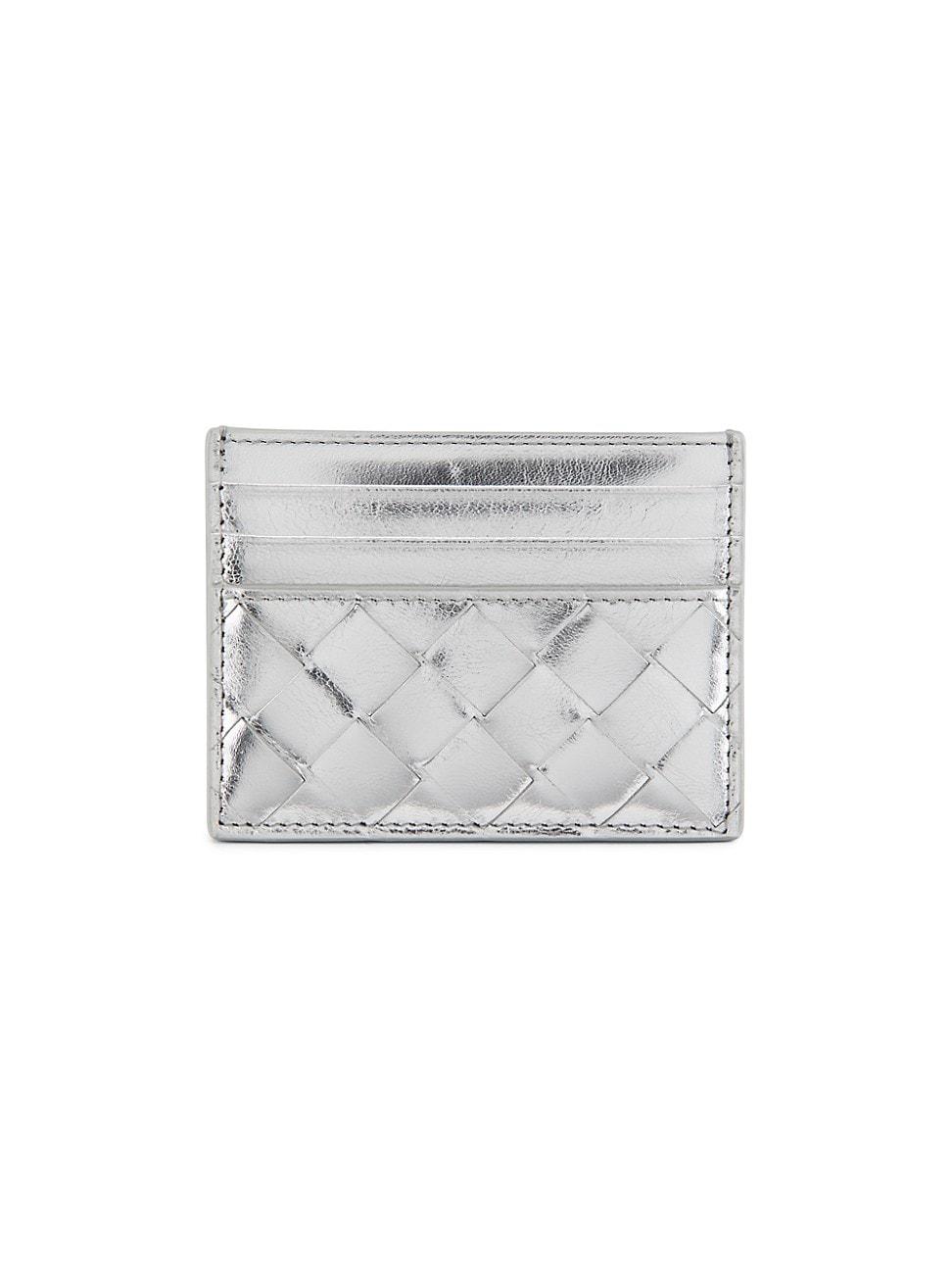 Made in Italy, Bottega Venetas Portacard card case is made of metallic lambskin leather and styled with the labels signature Intrecciato-pattern weave. Exterior: six card slots Interior: one central compartment Leather Lining: leather Made in Italy SIZE About 4.25W x 3.25H x 0.25D ABOUT THE BRAND Founded in 1966, the label known for fine Italian craftsmanship with creativity at its core has since catapulted to cult-level status. The houses storied intrecciato pattern in shoes and handbags, alongside its signature minimalist ready-to-wear, have made the label an editor and It-girl favorite. Handbags - Bottega Veneta Handbags > Bottega Veneta > Saks Fifth Avenue > Barneys. Bottega Veneta. Color: Silver.