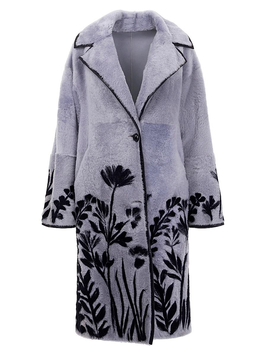 This shearling lamb reversible coat features a beautiful floral motif made using a meticulous technique. Notch collar Long sleeves Buttons Side pockets Shearling Type: Shearling lamb Shearling Origin: France Dyed Professional cleaning only Made in Italy SIZE Model is 58 wearing size Small Garment is approximately 41 from shoulder to hem. Lsd Rtw - Womens Rtw Lsd Mp > Gorski > Saks Fifth Avenue > Barneys. Gorski. Color: Periwinkle. Size: Small.