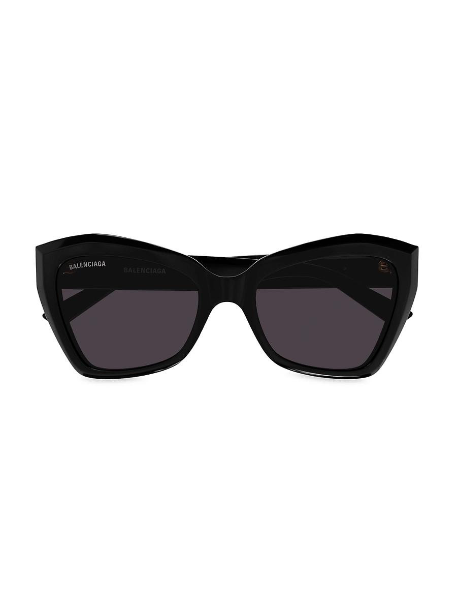 From the Rive Gauche Collection. These butterfly-shaped sunglasses from Balenciaga flaunt an angular shape and a goldtone BB plaque on the temple. 100% UV protection Solid lenses Includes case and cleaning cloth Acetate Made in Italy SIZE 56mm lens width 19mm bridge width 140mm temple length ABOUT THE BRAND Founded in Spain in 1919 by Cristbal Balenciaga, the iconic couture house is known for pushing boundaries with sculptural shapes and modern fabrications. Now based in Paris with Creative Director Demna Gvasalia at the helm, the brand continues to create meticulously tailored ready-to-wear, and innovative handbag, shoes and accessories. Soft Accessories - Sunglasses > Balenciaga > Saks Fifth Avenue > Barneys. Balenciaga. Color: Black.