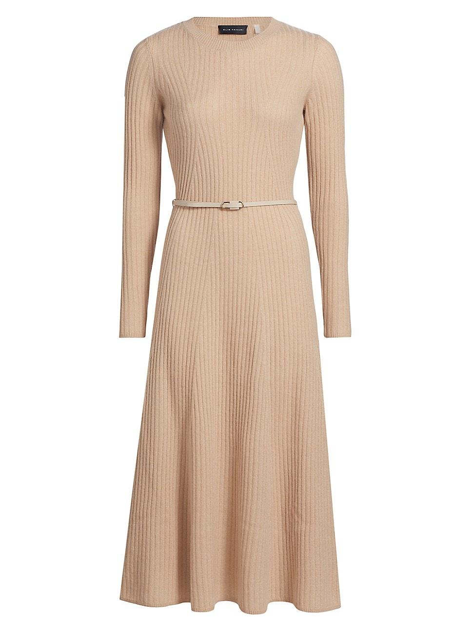 ONLY AT SAKS. Crafted of rib-knit cashmere, the Sabrina sweaterdress from Elie Tahari is designed in a fit-and-flare silhouette with a classic crewneck and belted waist. Crewneck Long sleeves Belted Pulls on 100% cashmere Dry clean Imported SIZE & FIT About 48.5 from shoulder to hem Model measurements: 510 tall Model is wearing a US size Small. Modern Collections - Elie Tahari > Elie Tahari > Saks Fifth Avenue > Barneys. Elie Tahari. Color: Light Saddle. Size: Medium.
