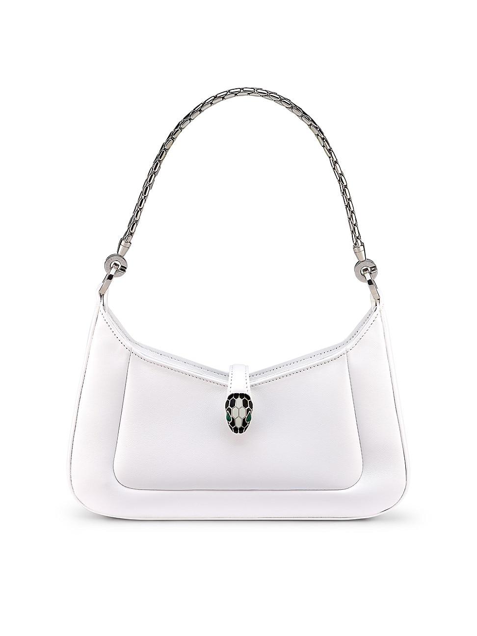 From the Serpenti Collection. Crafted of leather, BVLGARIs Serpenti Forever shoulder bag features a serpentine chain strap and the houses iconic snakehead clasp embellished with black and white enamel. Removable chain strap Strap closure Leather Made in Italy SIZE 10.75W x 7H x 1.7%D ABOUT THE BRAND Founded in Italy in 1884 by Greek silversmith Sotirio Bulgari, BVLGARI has become synonymous with unparalleled craftsmanship and exquisite jewelry. The brands Roman heritage can be seen in pieces inspired by the citys architecture, artwork and ancient mosaics. Today, the house continues to translate its rich history into opulent designs and fragrances. Handbags - Italian Designers > Bvlgari > Saks Fifth Avenue > Barneys. BVLGARI. Color: Flash Diamond.