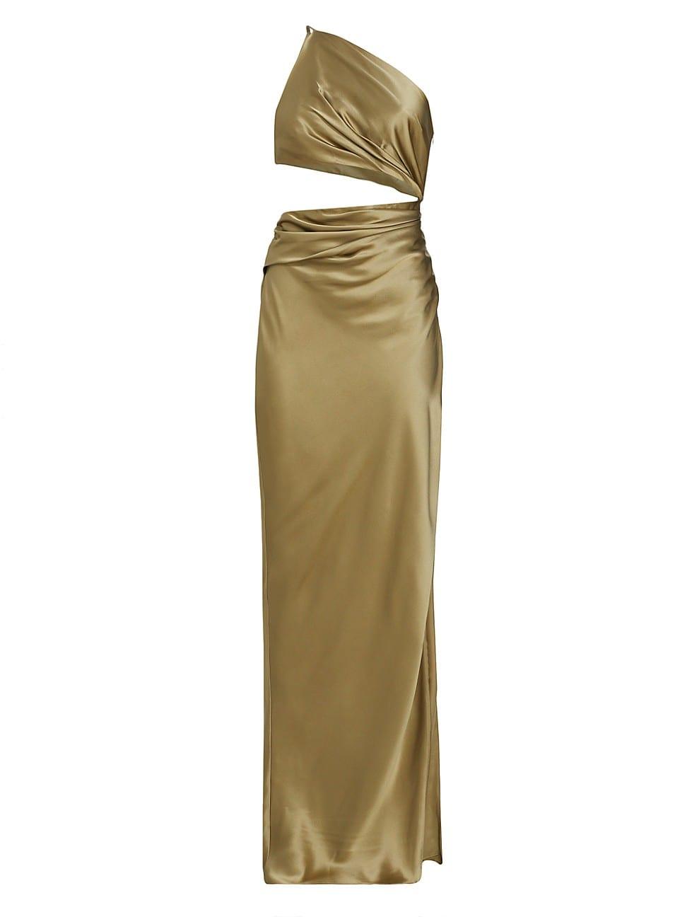 This stunning gown is crafted of silk with a one-shoulder design and cut-out waist. One-shoulder neckline Sleeveless High skirt slit Side zipper closure 100% silk Lining: 100% silk Dry clean Imported SIZE & FIT About 68 from shoulder to hem Model measurements: 510 tall Model is wearing a US size 4. Dress Collections - Contemporary Evening > The Sei > Saks Fifth Avenue > Barneys. The Sei. Color: Sage. Size: 6.
