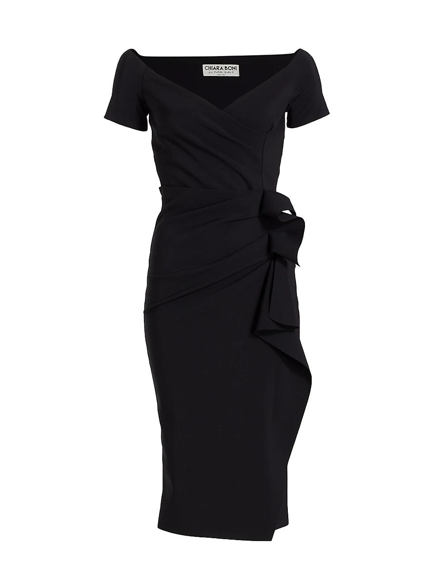 Cut in a formfitting silhouette, this knee-length wrap dress is complete with an off-the-shoulder neckline and draped three-dimensional side. Off-the-shoulder neckline Short draped sleeves Asymmetric hem Pullover style 72% polyamide/28% elastane Dry clean Made in Italy SIZE & FIT About 45 from shoulder to hem Model measurements: 511 tall Model is wearing a US size 4 ABOUT THE BRAND Self-taught designer Chiara Boni began her career creating ready-to-wear for several Italian labels before launching Chiara Boni La Petite Robe in 2007. With a focus on flattering the female form, her elegant and versatile styles have gained a loyal following. Dress Collections - La Petite Robe Di Chiara > Chiara Boni La Petite Robe > Saks Fifth Avenue > Barneys. Chiara Boni La Petite Robe. Color: Black. Size: 4.