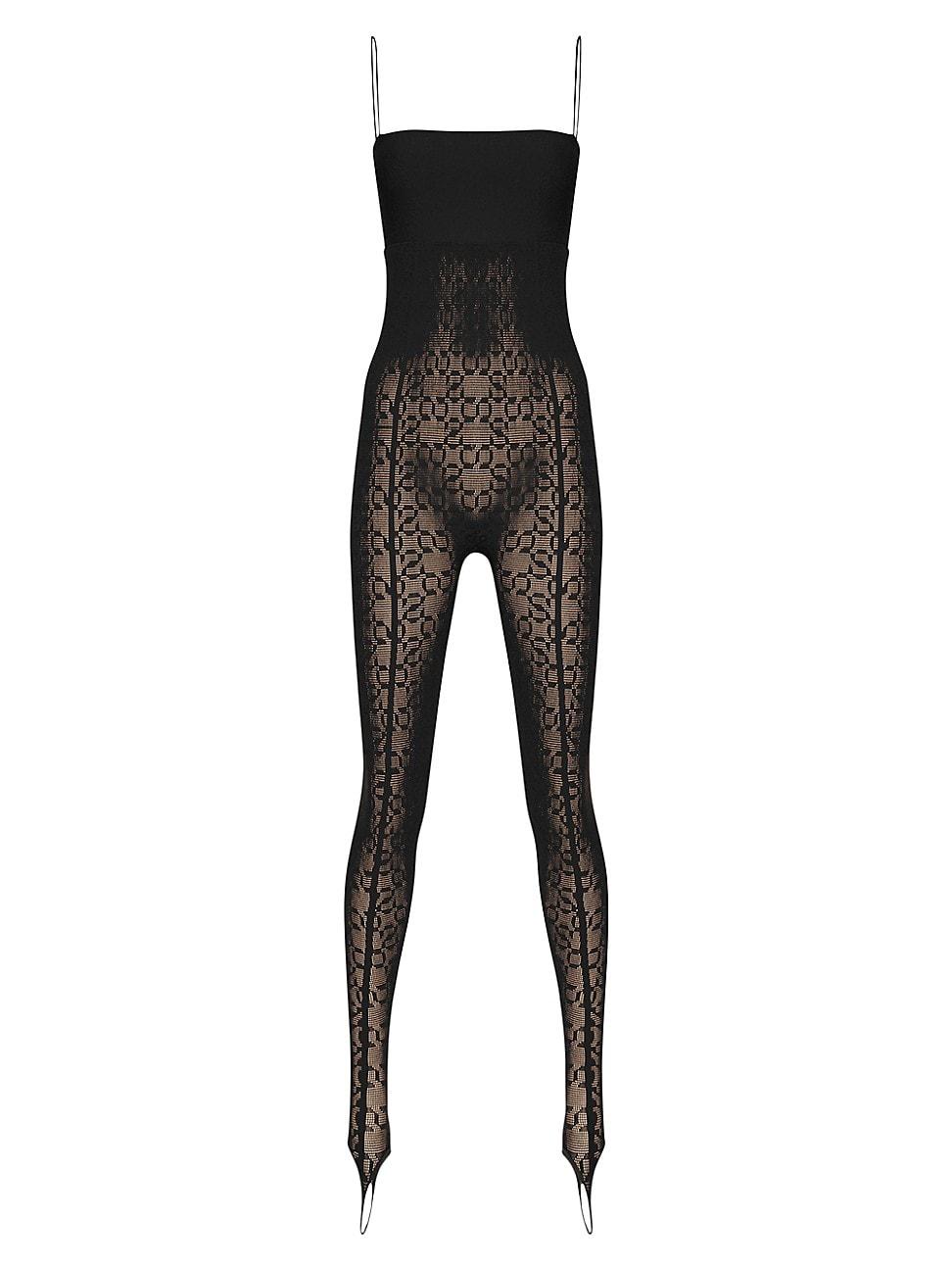 From the SIMKHAI x Wolford Collection. Cut in a body-con silhouette, this sleeveless jumpsuit offers a semi-sheer construction and knit logo pattern. The stretch style is complete with a plunging square neckline and stirrup ankle cuffs. Plunging square neck Adjustable spaghetti straps Stirrup ankle cuffs Open square back Pulls on 83% polyamide/17% elastane Machine wash Made in Italy SIZE & FIT Body-con silhouette About 41.25 from topline to hem Model measurements: 510 tall Model is wearing a US size Small. Lingerie - Wolford Hosiery > Wolford > Saks Fifth Avenue > Barneys. Wolford. Color: Black. Size: Small.