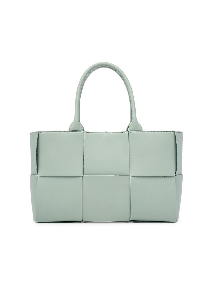 Bottega Venetas Arco tote is designed in the signature intrecciato weave pattern. Made in Italy by skilled artisans of rich leather, this piece is accompanied by a removable zip pouch for optimal storage. Two handles Open top with tie closure Removable zip pouch Interior main compartment Leather Made in Italy SIZE Handles, 6 drop 11.75W x 7.75H x 4.5D ABOUT THE BRAND Founded in 1966, the label known for fine Italian craftsmanship with creativity at its core has since catapulted to cult-level status. The houses storied intrecciato pattern in shoes and handbags, alongside its signature minimalist ready-to-wear, have made the label an editor and It-girl favorite. Handbags - Bottega Veneta Handbags > Bottega Veneta > Saks Fifth Avenue > Barneys. Bottega Veneta. Color: Sauge Gold.