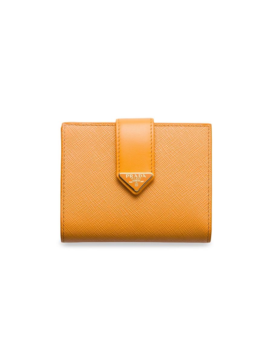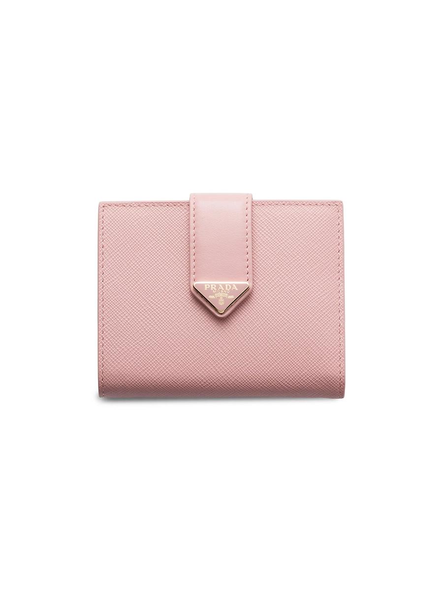 This small wallet with sleek elegance comes in a combination of smooth and Saffiano leather, an iconic Prada material with a crosshatch texture. Characterized by its minimal design and equipped with several compartments and pockets, the accessory is accented with the iconic enameled triangle logo of the brand embellishing the closure. Snap closure Enameled metal triangle logo One bill compartment Three card slots Two internal pockets Internal coin compartment with flap Moir and leather lining Imported This product is not eligible for extended holiday returns SIZE: 8.5 / 3.34W x 11.2 / 4.4H. Lsd Handbags - Prada Handbags Access > Prada > Saks Fifth Avenue > Barneys. Prada. Color: Beige Khaki.