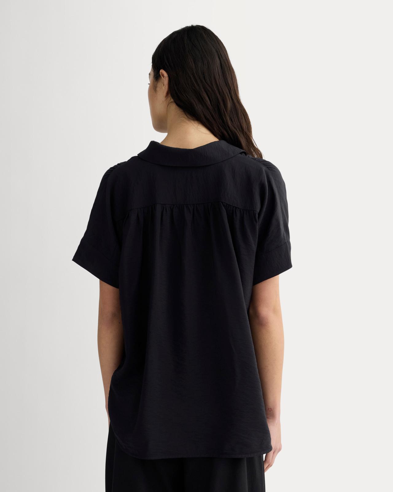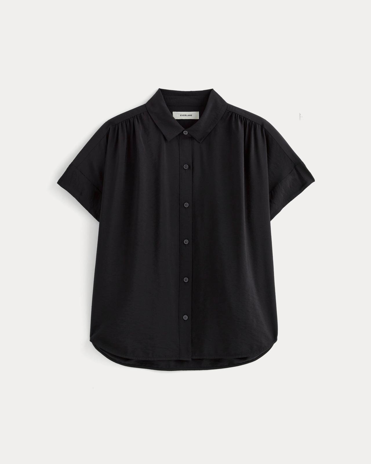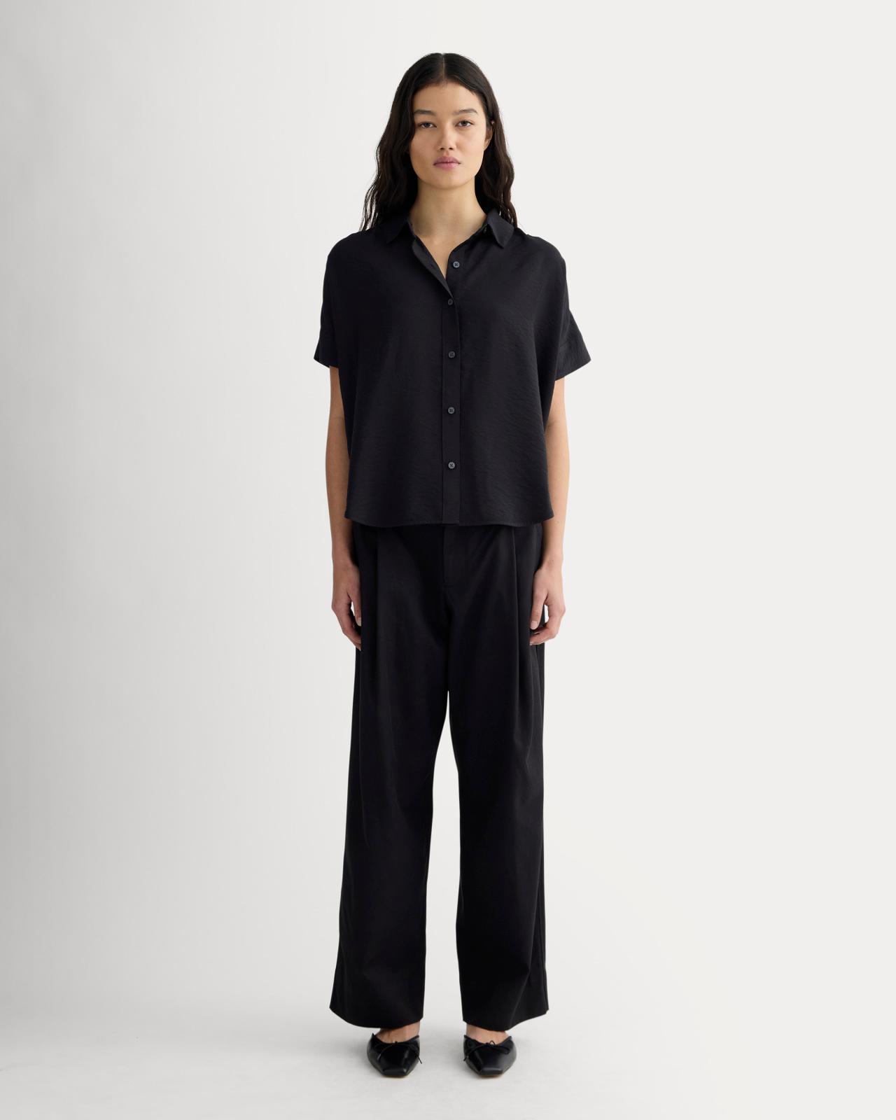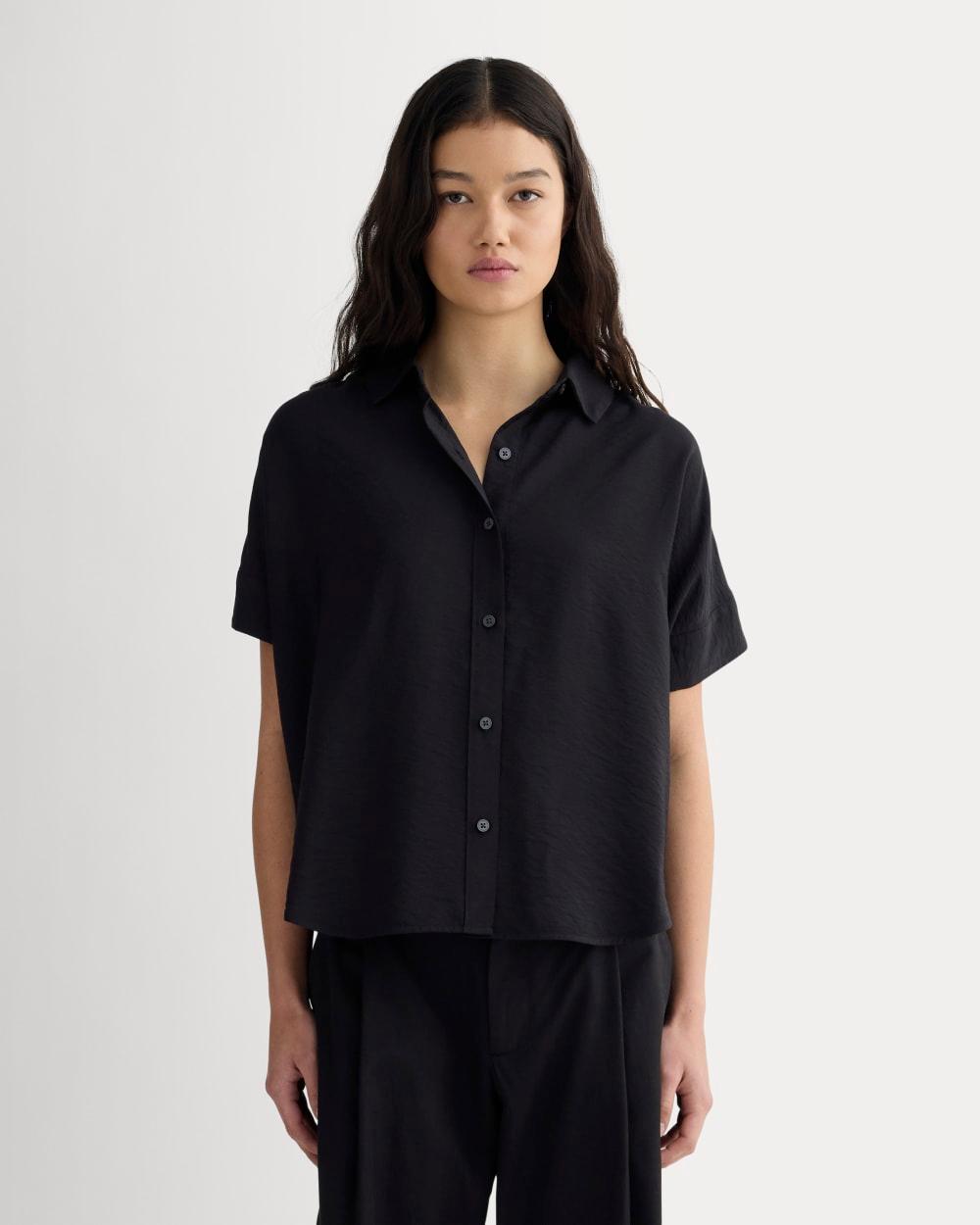 Level up every outfit. Ready for workwear or to dress up your downtime this shirt features a classic collar front button placket in a boxy fit. Made with a lightweight textured drapey fabric. Style with jeans or joggers for low-key days or tuck it in chinos or pants to take it out for the night. Womens Square Shirt in SoftLuxe by Everlane in Black, Size XS
