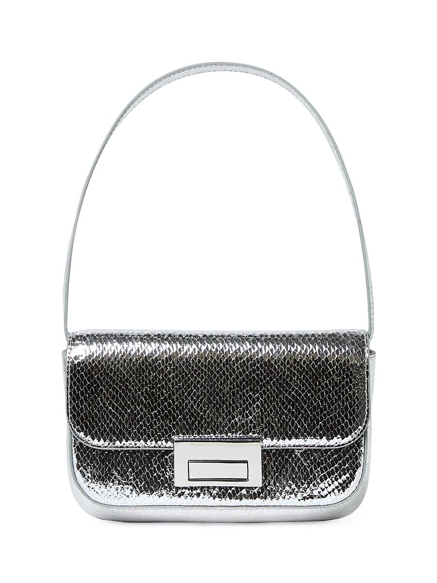 Loeffler Randalls Stefania baguette is crafted of snake-embossed leather and lined with cotton canvas. Shoulder strap Push-lock closure Leather Lining: cotton canvas Imported SIZE About 8.25W x 5.75H x 1.5D. Handbags - Contemporary Handbags > Loeffler Randall > Saks Fifth Avenue > Barneys. Loeffler Randall. Color: Silver.