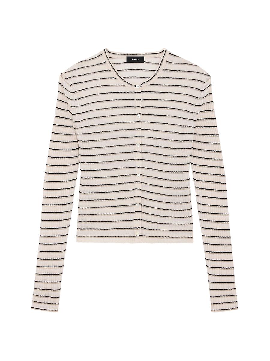 Theorys cropped cardigan is crafted in a linen blend with a knitted striped pattern. Crewneck Long sleeves Button-front closure 75% linen/25% viscose Dry clean Imported SIZE & FIT About 19.75 from shoulder to hem Model measurements: 510 tall Model is wearing a US size Small ABOUT THE BRAND In 2000, founders Andrew Rosen and Elie Tahari launched Theory with a focus on innovative, comfortable stretch pants for women. Since then, the New York-based brand has become well-known for its mastery of polished, well-tailored separates for women and men. Contemporary Sportswear - Theory Sportswear > Theory > Saks Fifth Avenue > Barneys. Theory. Color: Light Parchment Multi. Size: Small.