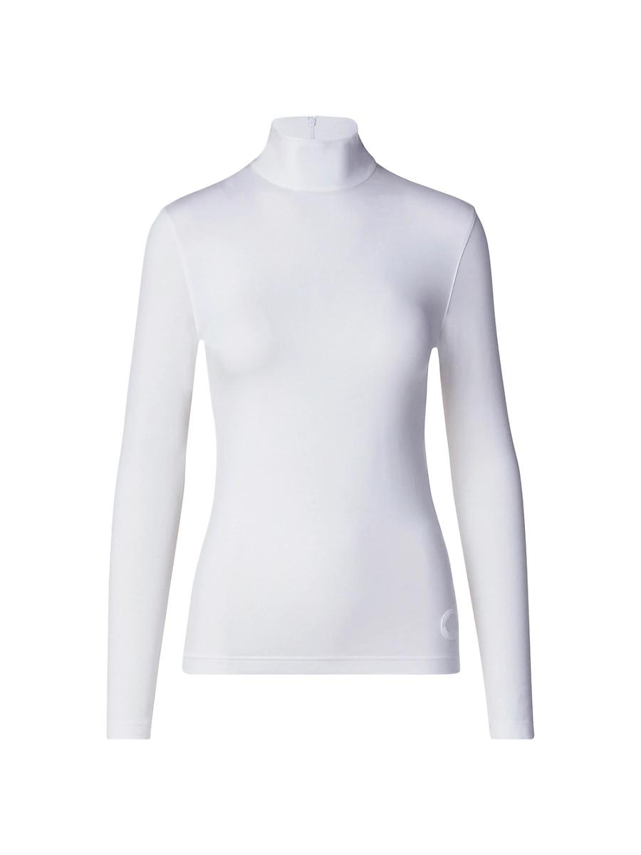 Stay classy yet comfortable in this stretchy modal top that features a high mock neck and the labels signature circle motif in the form of a discreet appliqu. Back zip closure Mock neck Long sleeves 95% modal, 5% elastane Dry clean Made in Romania Womens Designer Clothing