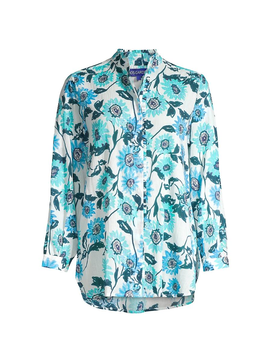 Crafted of pure cotton, the high-low Tussa shirt from Ros Garden is decorated with painterly floral prints. Ruffled band collar Bracelet-length sleeves, button cuffs Split sides Round high-low hem Concealed button-front closures 100% cotton Hand wash Imported SIZE & FIT About 29.75 from shoulder to hem Model measurements: 510 tall Model is wearing a US size Small. Modern Collections - Modern Trend > Ros Garden > Saks Fifth Avenue > Barneys. Ros Garden. Color: Blue Ortensia. Size: Medium.