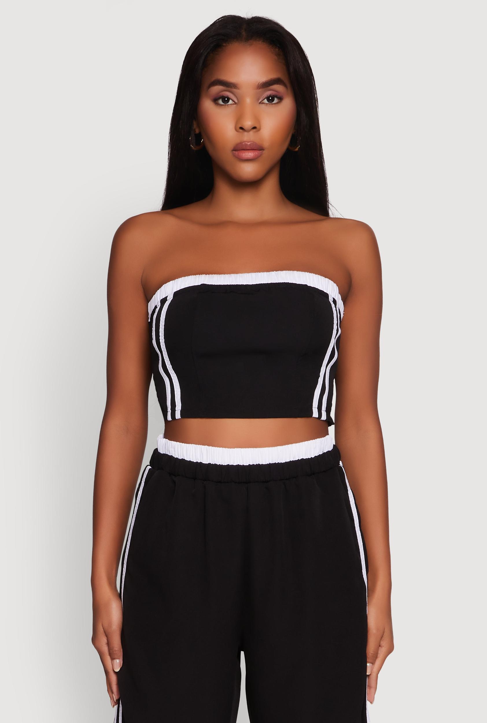 Ready to turn heads and keep it cool? The Varsity Stripe Crop Tube Top is your new go-to for effortless style with an athletic edge. This strapless, sleeveless classic fit top features bold varsity stripes and a cropped hem that shows just the right amount of skin. Perfect for casual hangouts or active days, its the ultimate mix of sporty and chic that fits your vibe and your budget. Classic fit with a timeless silhouette for all-day comfort Strapless and sleeveless design keeps you cool and confident Bold varsity stripe detail adds a sporty, trendy touch Cropped hem perfect for pairing with high-waisted jeans or shorts Ideal for casual outings, activewear looks, and laid-back vibes Model Pictured Wearing Size SHeight 58, Bust 32, Waist 25, Hips 36Fits True To SizeContent and Care Material: SELF: 92% Polyester, 8% Spandex, CONTRAST: 97% Cotton, 3% Spandex Care Instructions: Hand Wash Country Of Origin: China Rainbow Item Number 1413058757124
