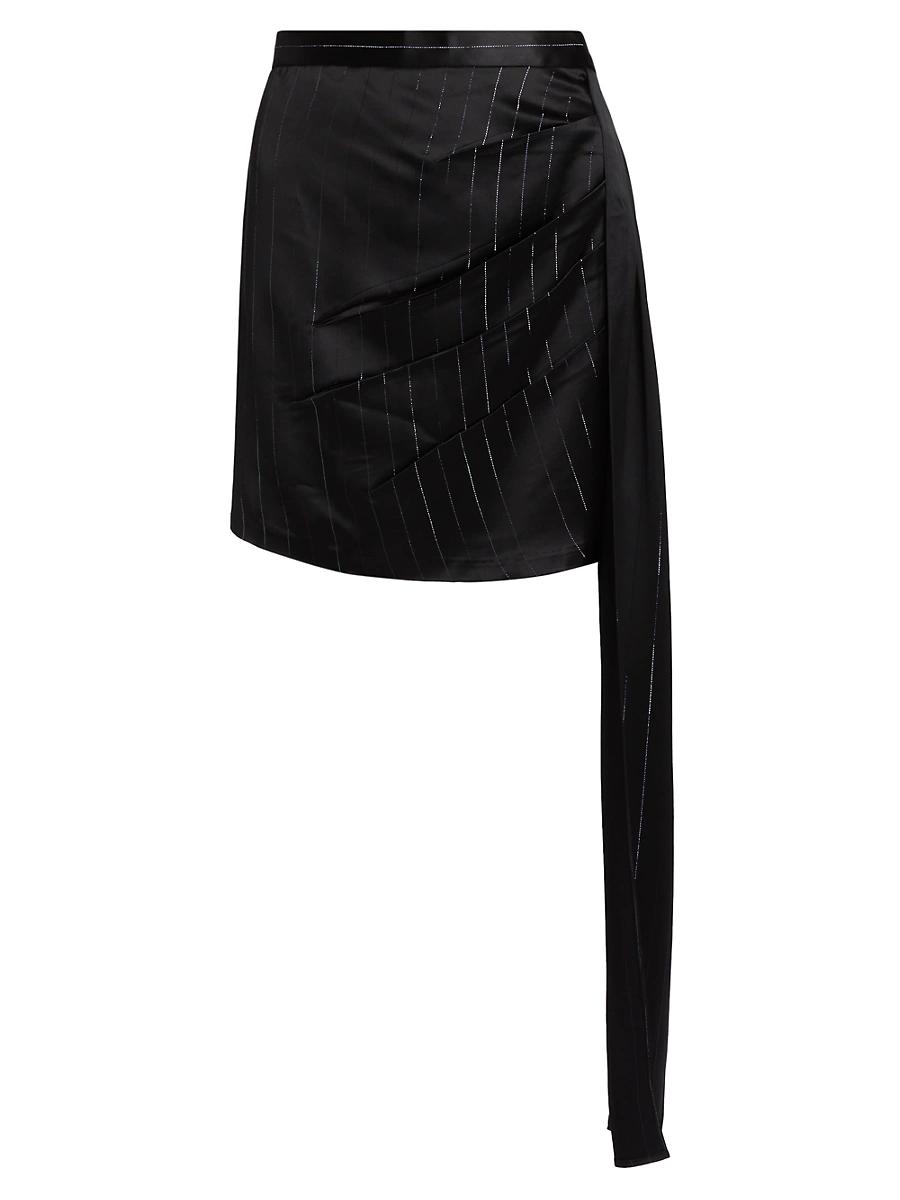 Finished in satin, Nonchalant Labels Voila miniskirt showcases a metallic diagonal stripe design and draped side. Banded waist Back zip closure 73% acetate/27% polyester Dry clean Imported SIZE & FIT About 17 long Model measurements: 510 tall Model is wearing a US size Small. Contemporary Sportswear - Trend > Nonchalant Label > Saks Fifth Avenue > Barneys. Nonchalant Label. Color: Black Silver Stripe. Size: XS.