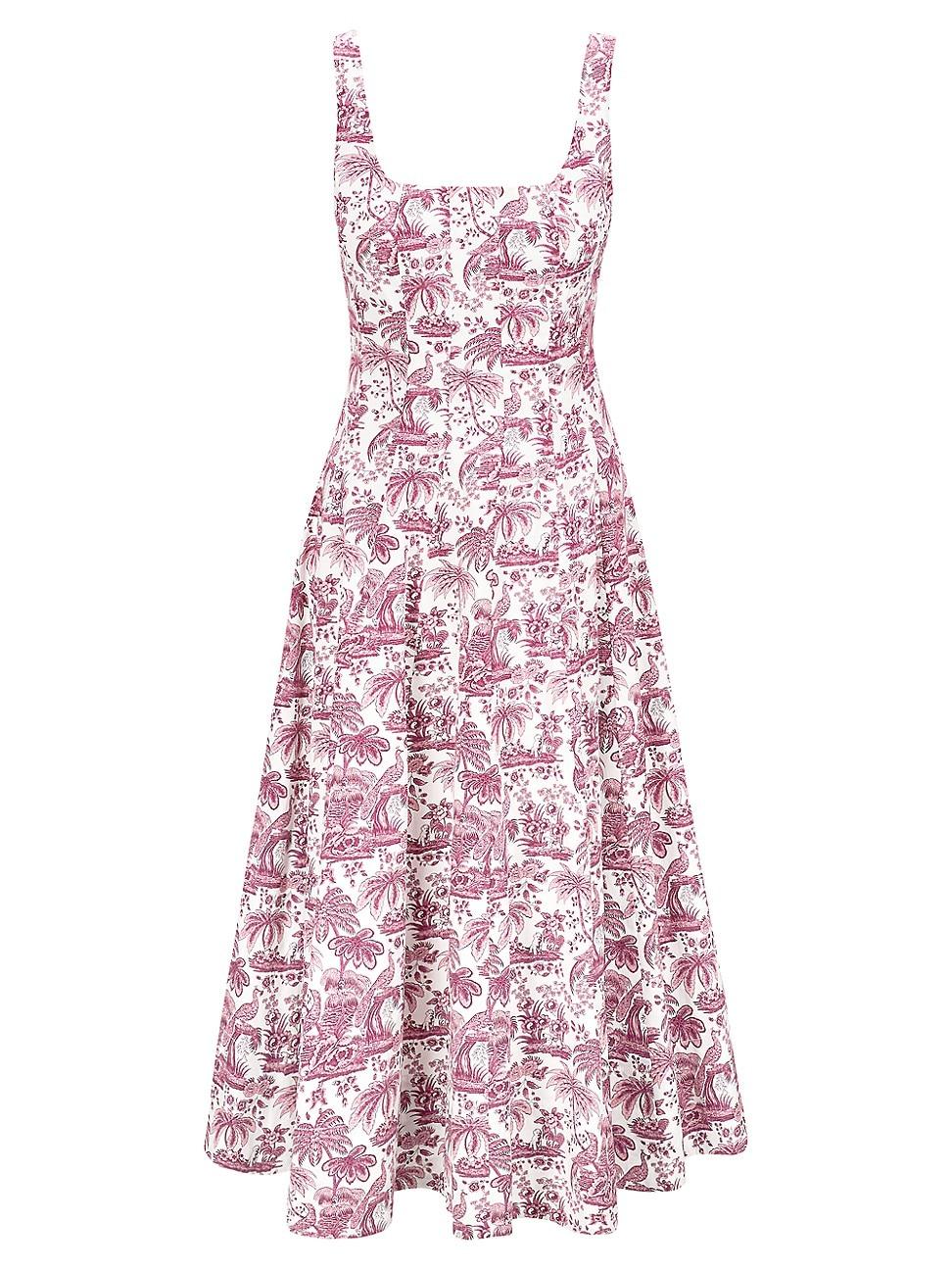 Crafted of stretch cotton, Stauds Wells A-line midi-dress showcases broad straps that frame the square neckline. This piece elevates the design with a tropical-inspired toile print. Square neck Fixed straps Concealed back zip closure 98% cotton/2% spandex Lining: 100% cotton Dry clean Imported SIZE & FIT About 50 from shoulder to hem Model measurements: 510 tall Model is wearing a US size 4. Contemporary Sportswear - Contemporary Collections > Staud > Saks Fifth Avenue > Barneys. Staud. Color: Bordeaux Toile. Size: 10.