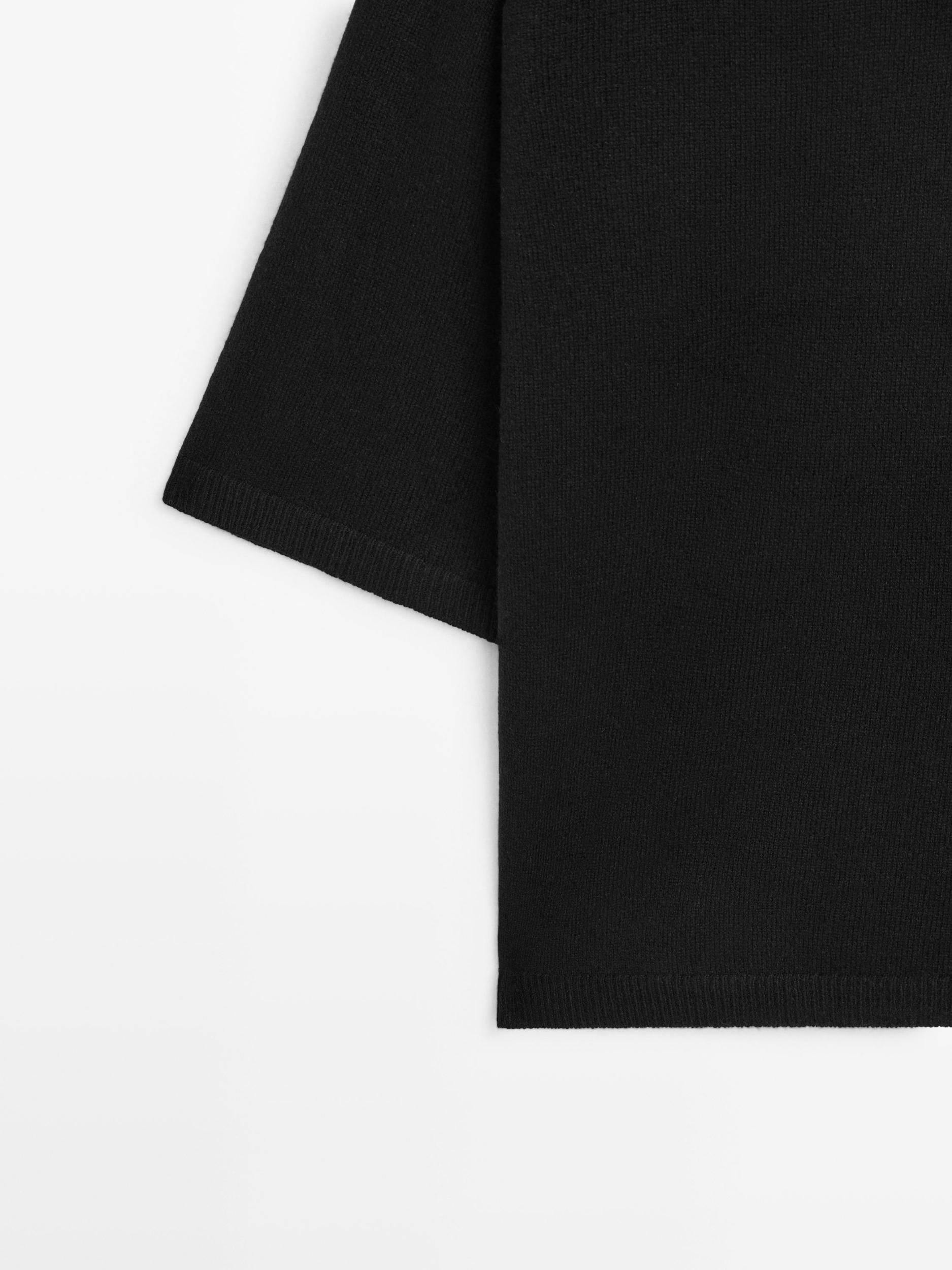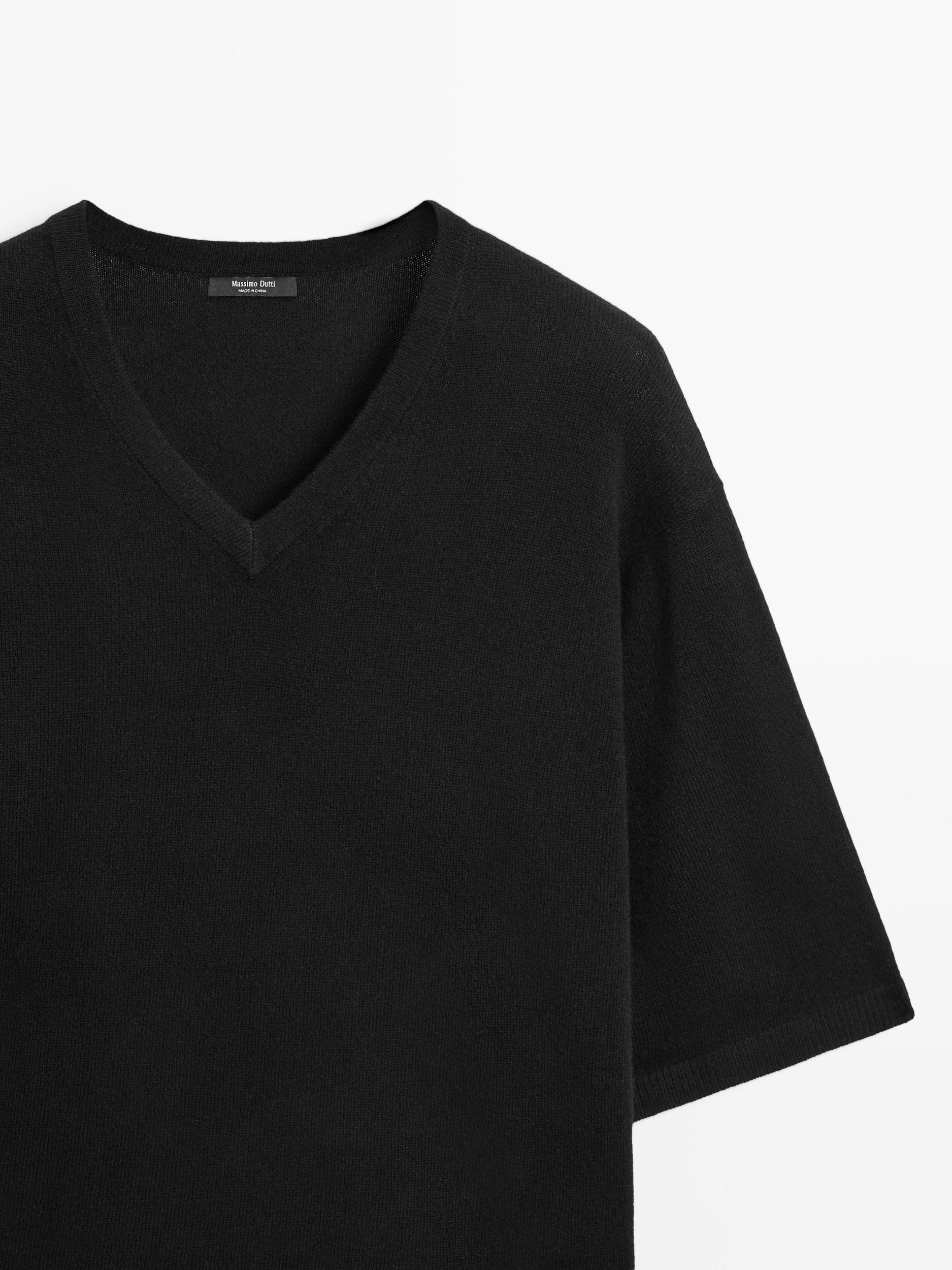 Knit sweater in wool blend fabric, V-neck, Three-quarter length sleeves, Wide and relaxed silhouette, not tailored