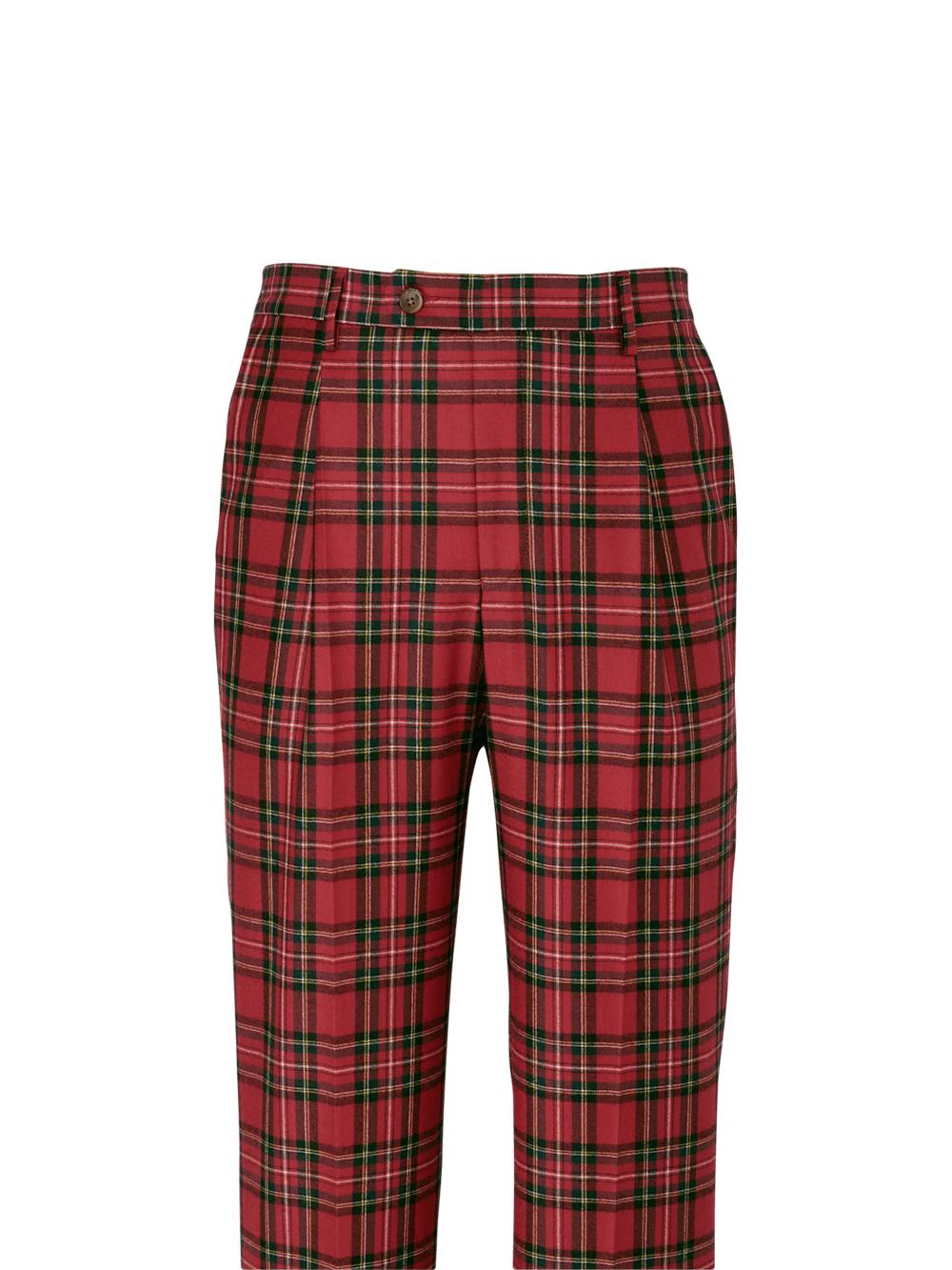 Wool Flannel Plaid Single Pleat Pants - Red Multi