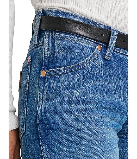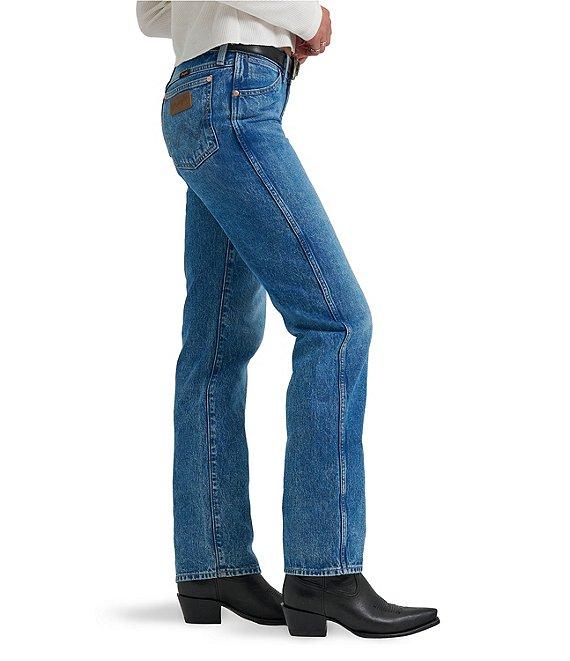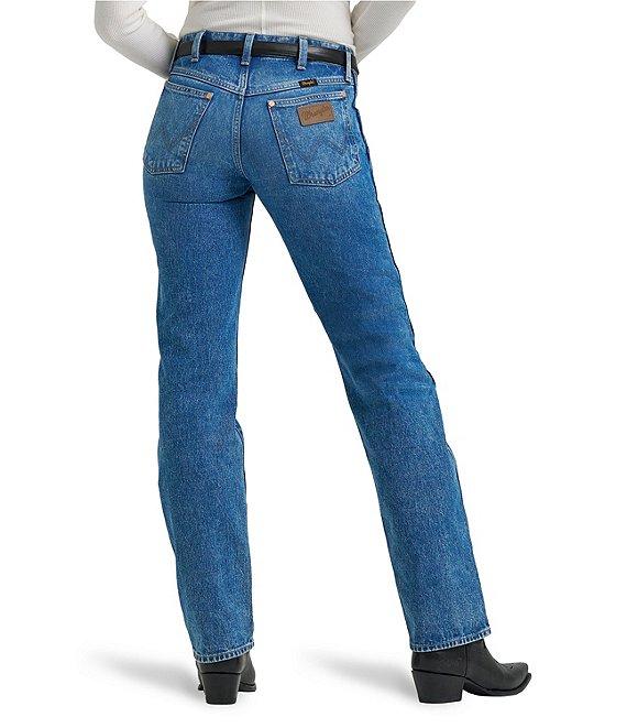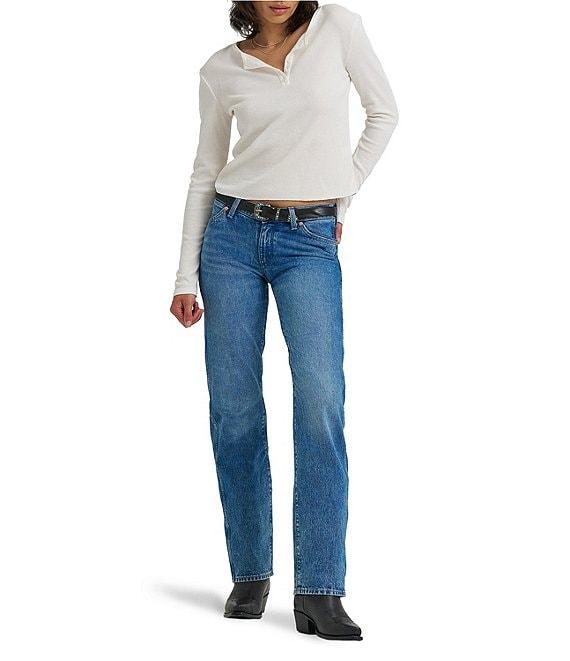 From Wrangler®, these jeans feature: Denim fabrication No stretch Low rise Straight leg Zip-Fly with button closure Five pocket styling ‘W’ embroidery across the back detail Approx. 7.25" front rise, 16.75" leg opening Cotton Machine washable Imported.