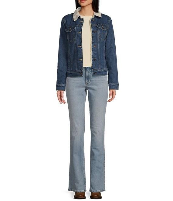 From Wrangler®, these jeans feature: High rise 5-pocket styling Front button/zip fly closure Bootcut legs Approx. 30", 32", 34" inseams Cotton/elastane Machine wash/tumble dry Imported.