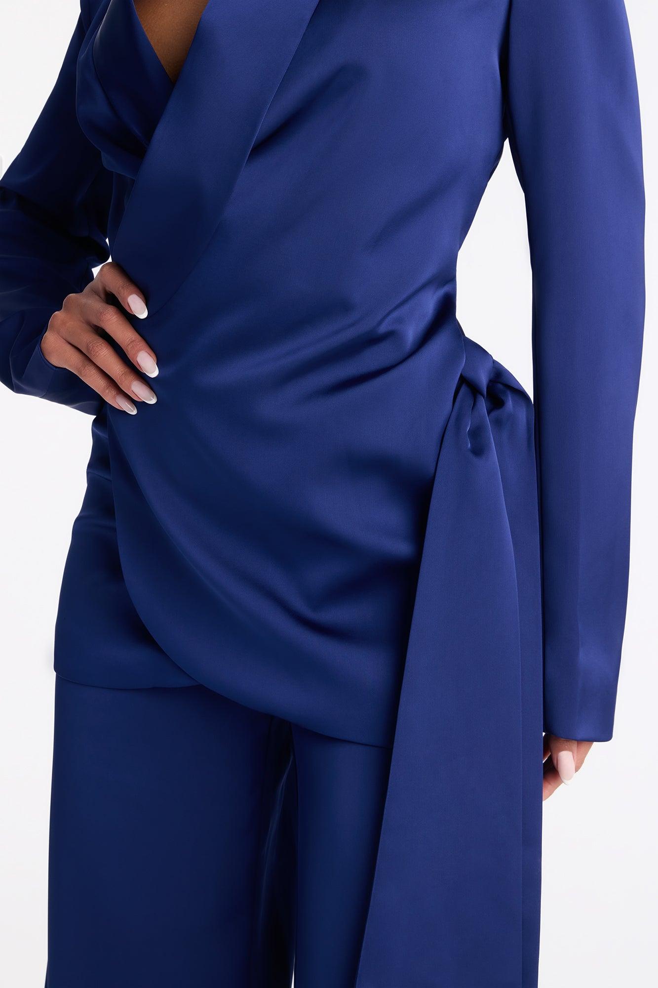Wrap It Up Satin Blazer Pant Set - Navy Female