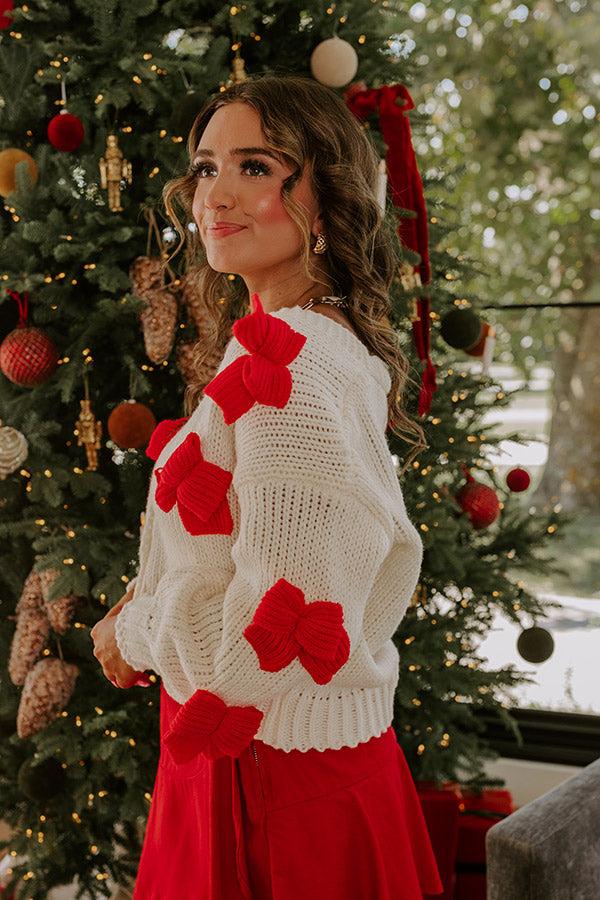 - Your outfit just got cuter with this adorable cardigan! Its pretty bow details add the sweetest touch to your trendy everyday style. - Unlined knit material - Red hued bows on the front and sleeves - A v-cut neckline - Long sleeves with ribbed cuffs - Three buttons to secure the front - A relaxed silhouette that ends in a ribbed hemline