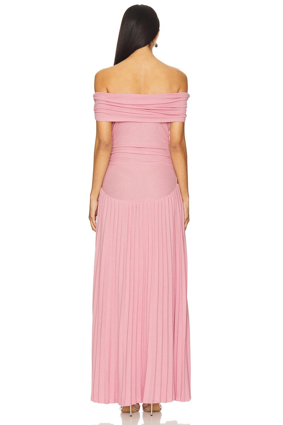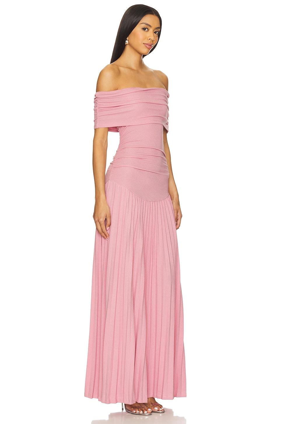 LIONESS x REVOLVE75% viscose, 17% polyester, 8% elastane. Hand wash cold. Unlined. Pull-on styling. Off the shoulder styling with foldover neckline. Drop waist. Midweight fully fashion knit fabric. Neckline to hem measures approx 56" in length. Made in China. Revolve Style No. LIOR-WD136. Manufacturer Style No. LD944-2407.