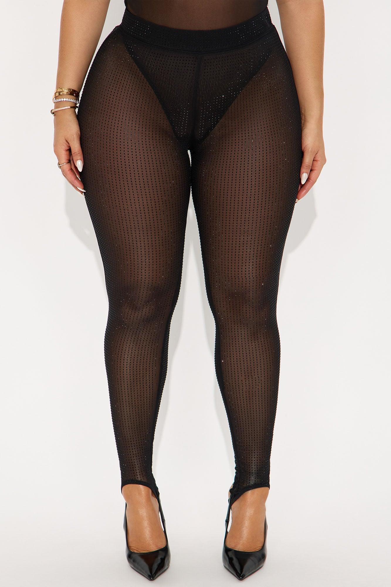 Available In Black. Stirrup Legging High Rise Elastic Waistband Rhinestone Mesh Sheer Stretch Disclaimer: Due To The Rhinestone Placement, Each Garment Is Unique. Self: 95% Polyester 5% Spandex Imported California Proposition 65WARNING: Cancer and Reproductive Harm - www.P65Warnings.ca.gov.
