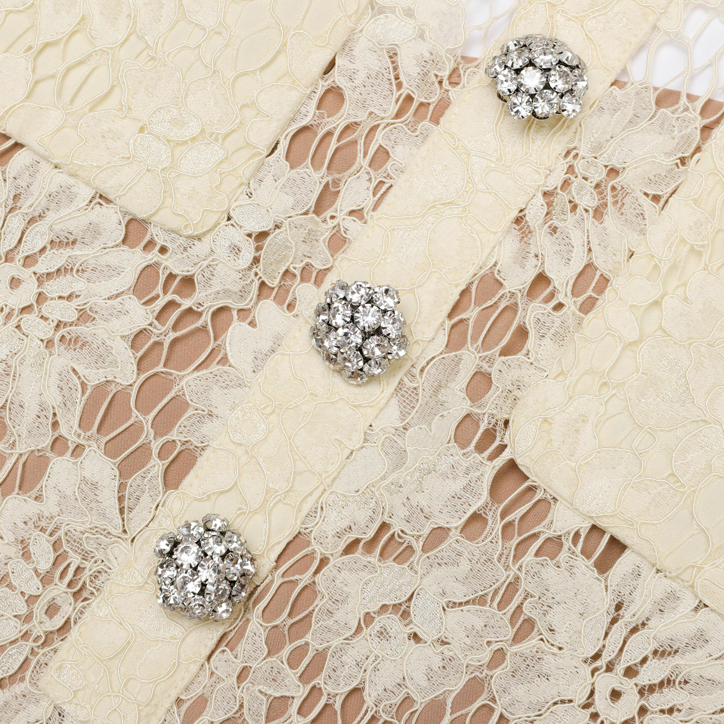 Romantic yet playful, this buttery yellow shift mini dress is cut from floral lace and edged with sparkling diamanté trims. Pair with flats for garden parties or switch to heels for a wedding look.Fitted styleThis style has minimal stretchConcealed zip closure at backRemovable cami liningScalloped hemModel is 5ft10/178cm and wears a size UK 6
