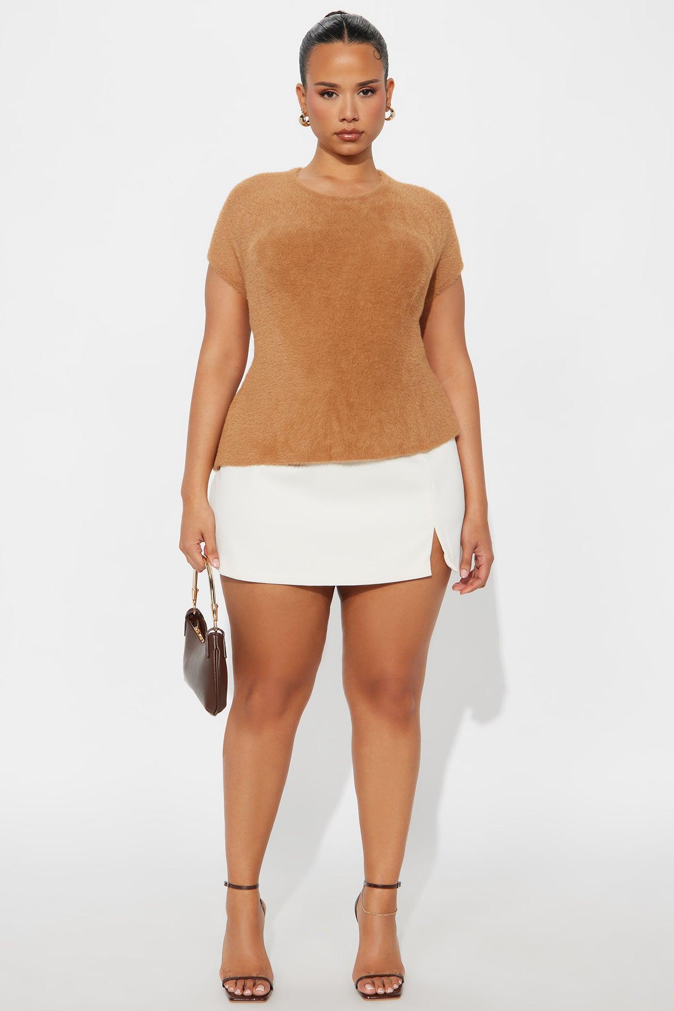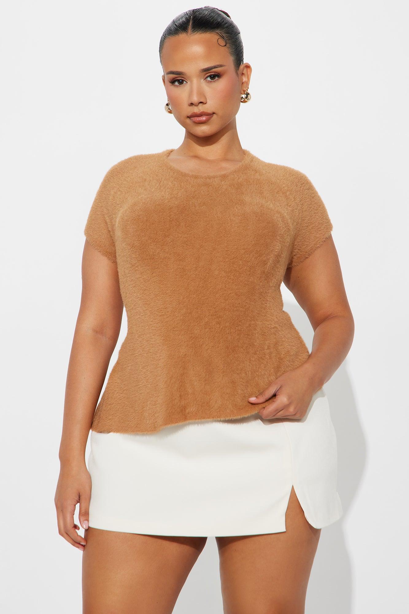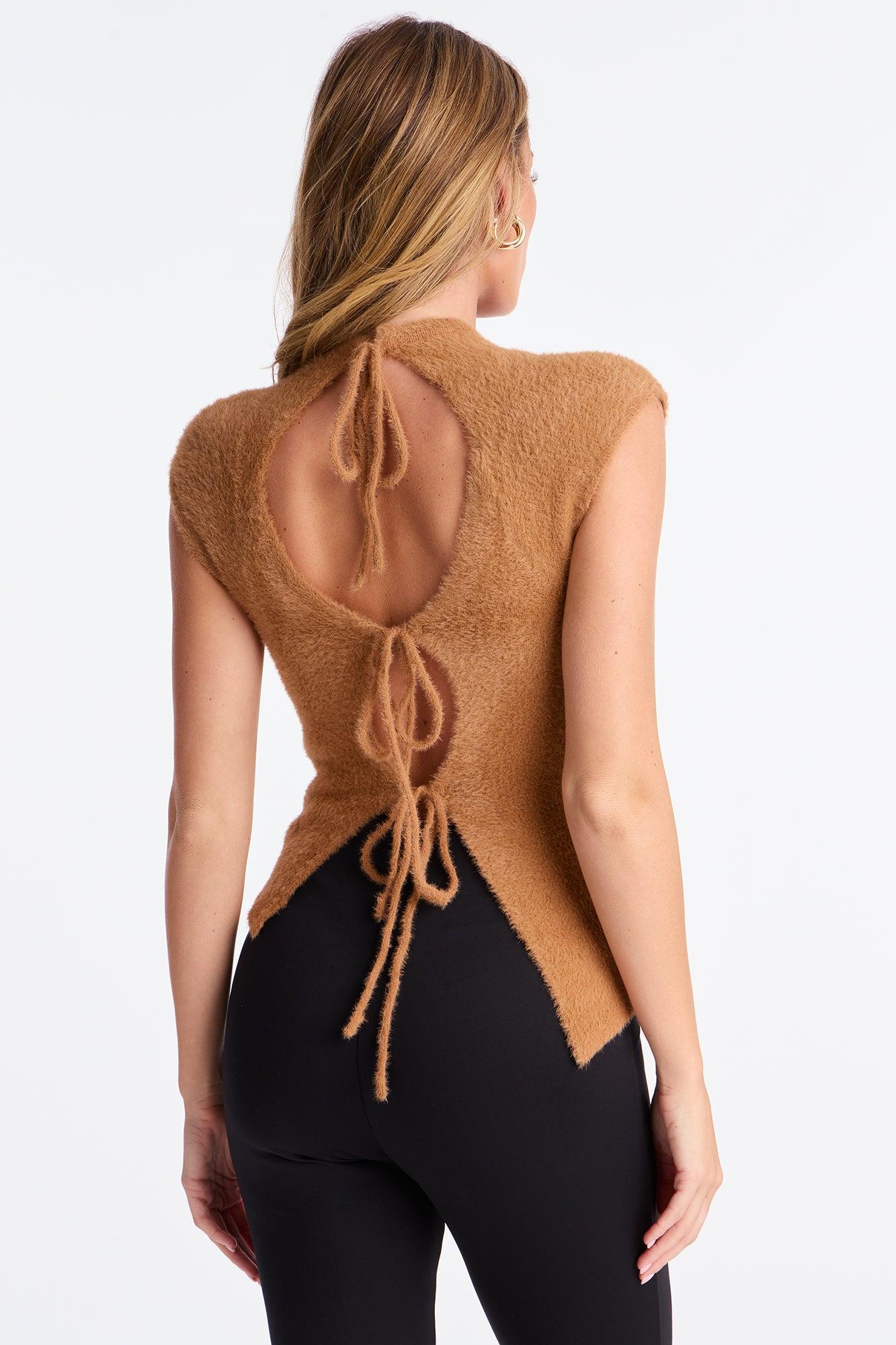 Your Babe Fuzzy Open Back Sweater Top - Mocha Female