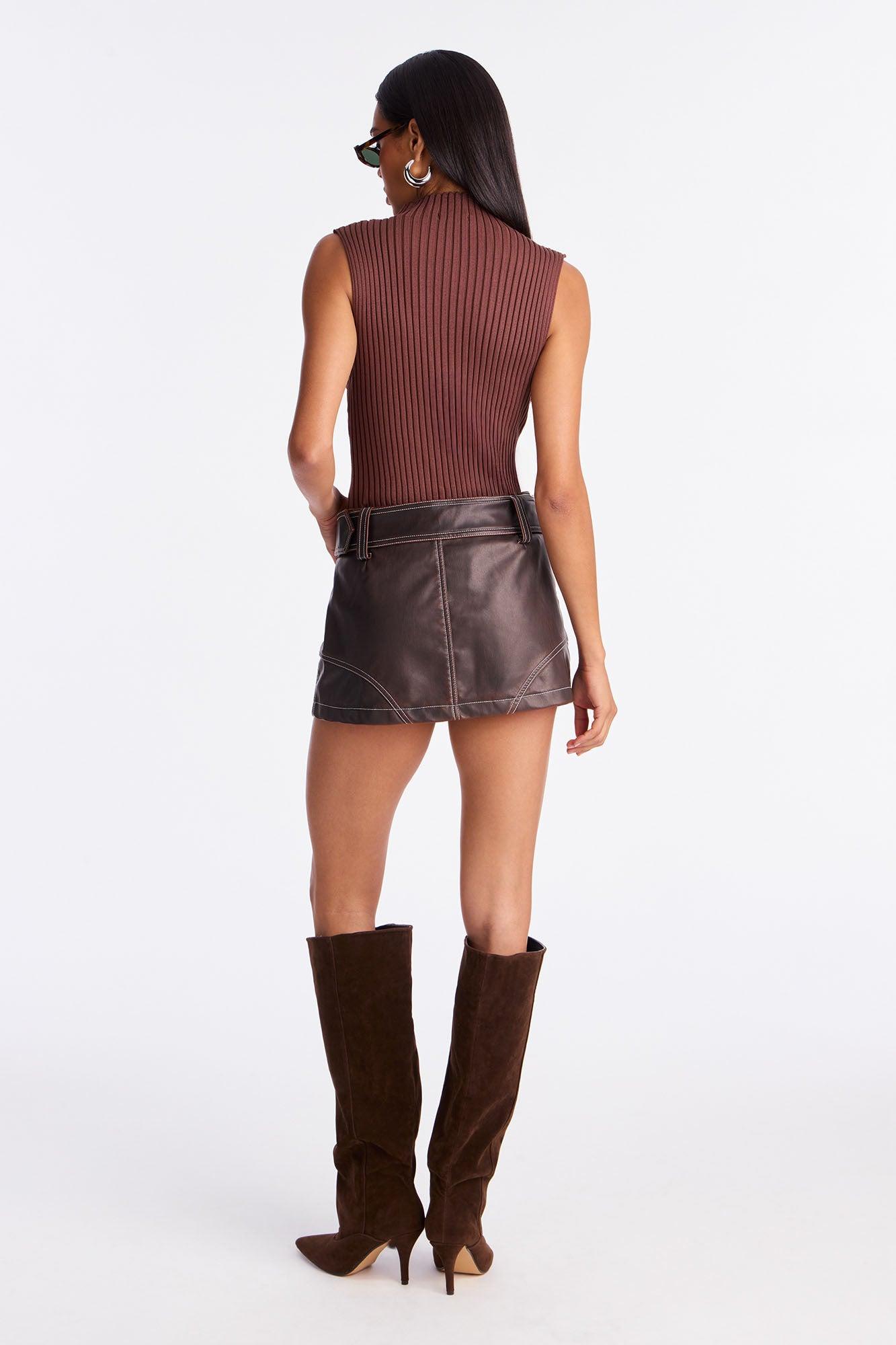 Your New Obsession Belted Faux Leather Micro Mini Skort - Brown Female
