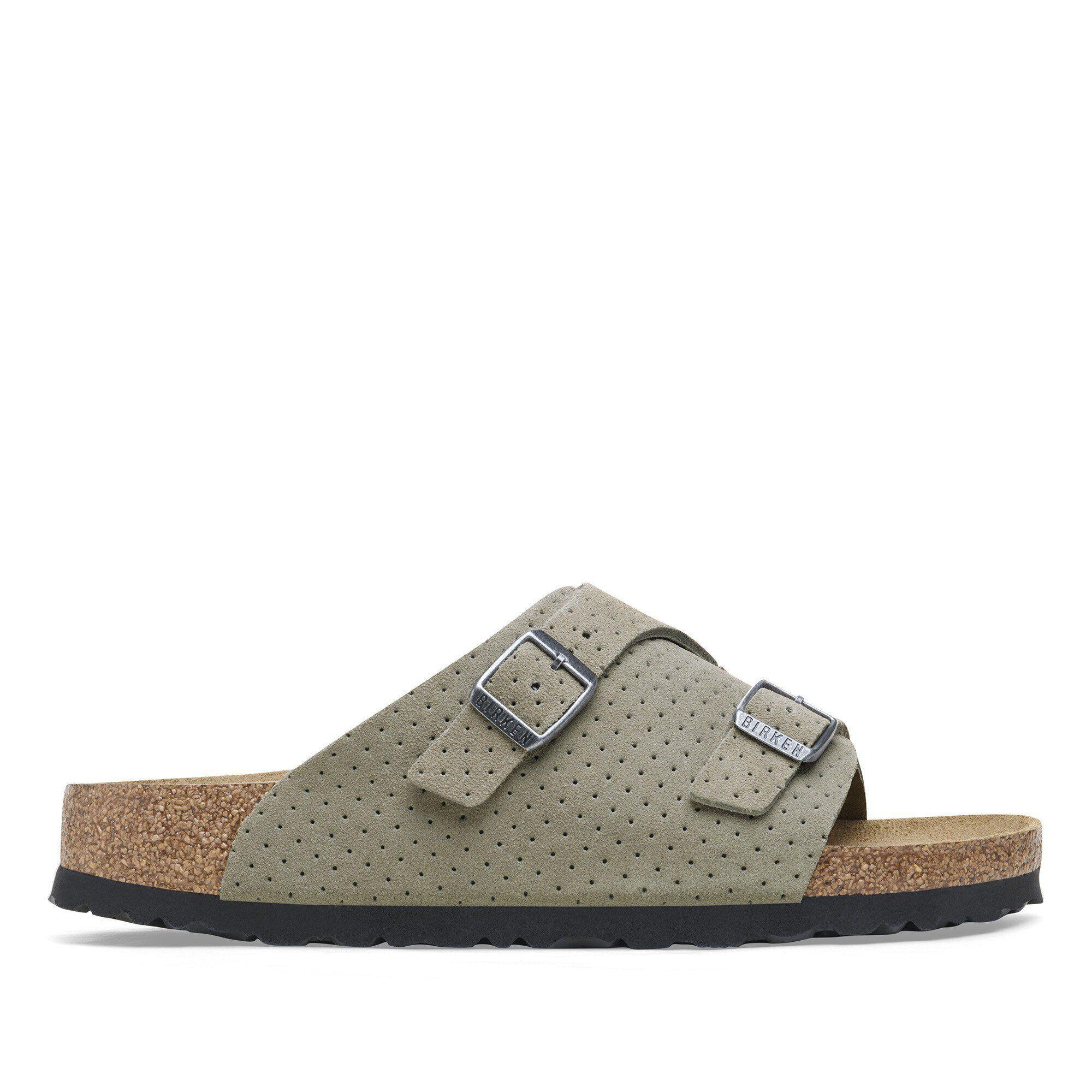 Back by popular demand. The BIRKENSTOCK Zürich returns with its long-loved design, featuring extra coverage and adjustability from two metal pin buckles. This season, dotted suede gives your style new dimension with the material you love most. It all rests on our contoured footbed, designed to shape to you for the ultimate in custom support.Contoured cork-latex footbed creates custom support with wearClassic suede upperSuede footbed lining helps keep you comfortableEVA sole is flexible and lightweightSingle strap with two adjustable metal pin bucklesMade in Germany