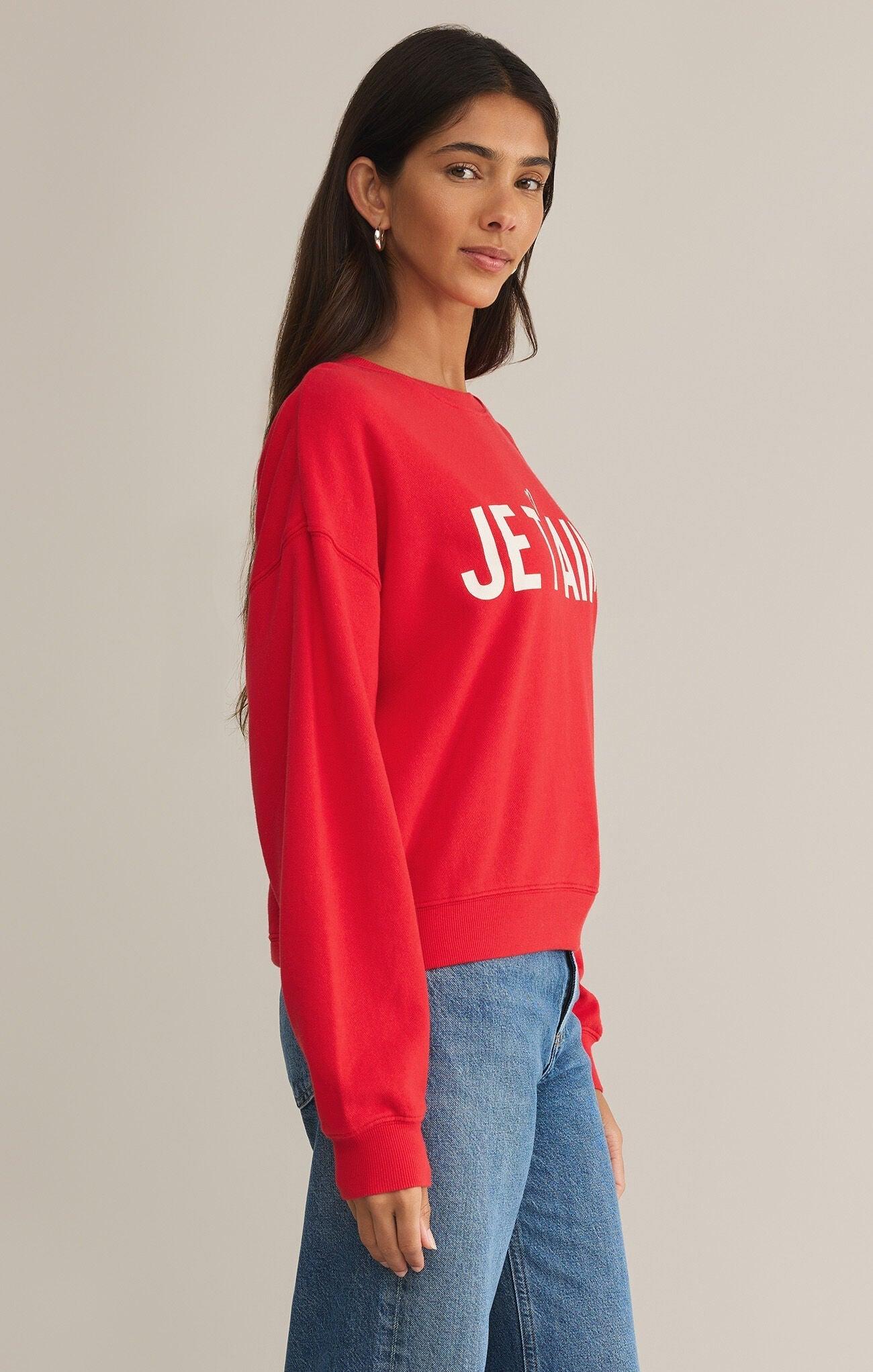 Stay cozy and stylish with the Z Supply First Date Sweatshirt Je T'aime! This sweatshirt features a soft and comfortable fabric that will keep you warm all day long. The "Je T'aime" design adds a touch of romance and charm to your look. Perfect for a casual day out or a romantic date night.