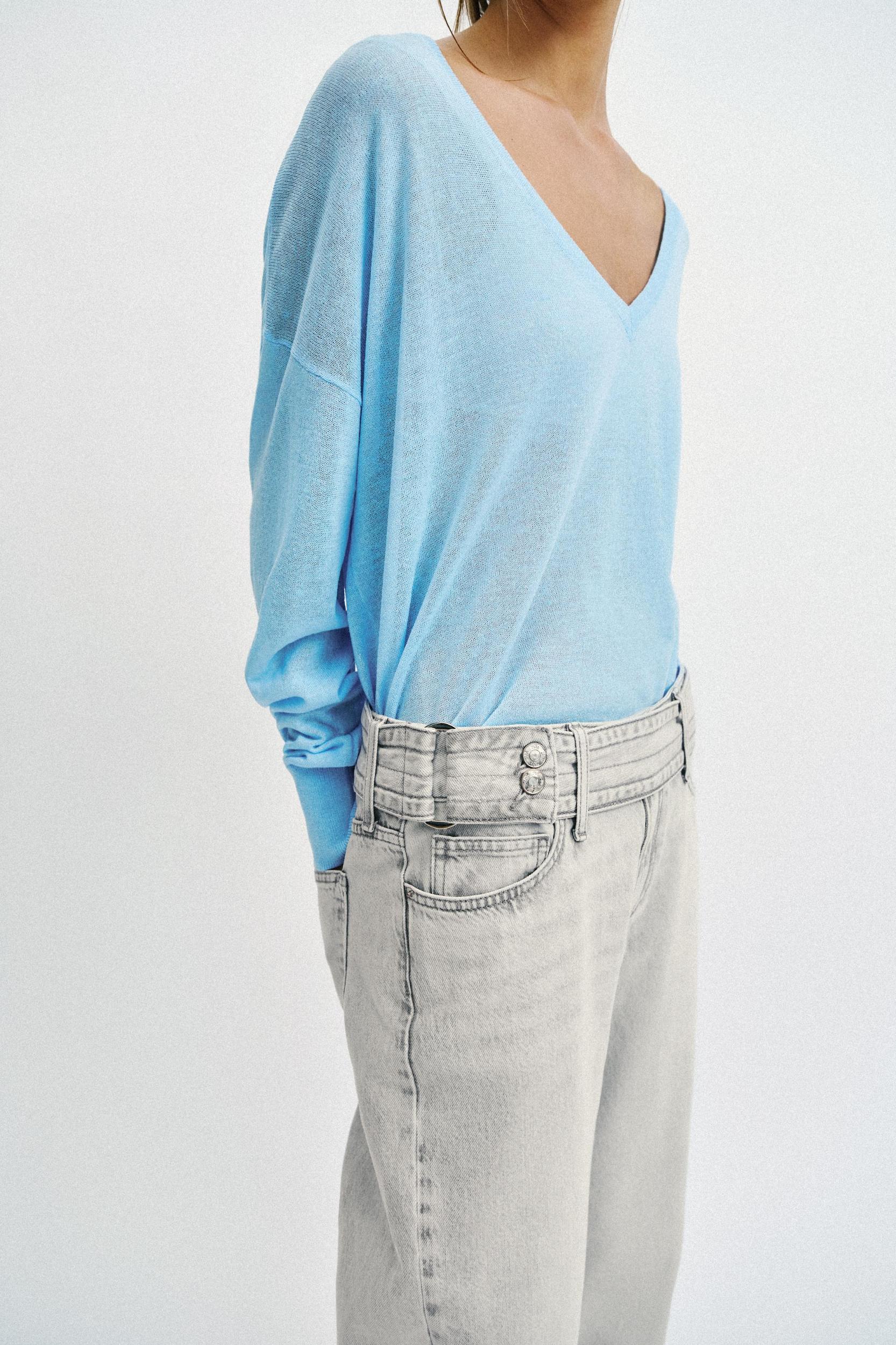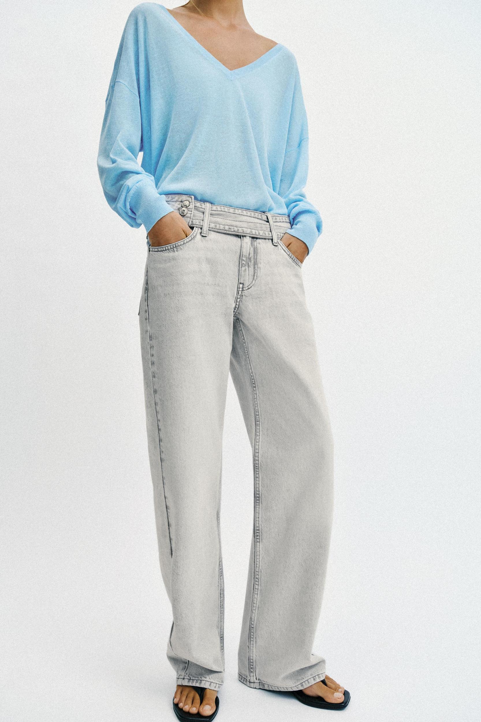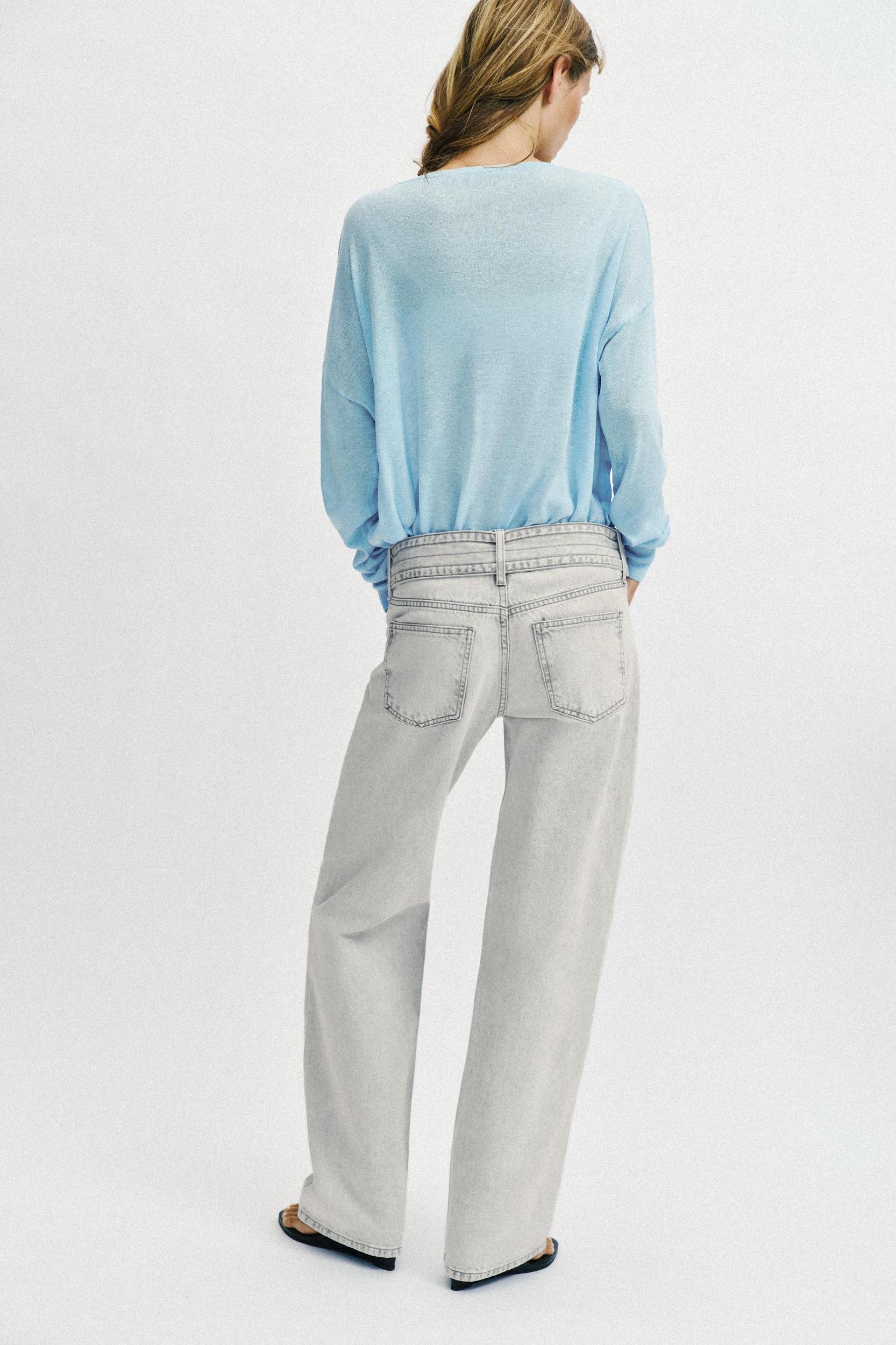 LOW RISE - STRAIGHT - LOOSE FIT Jeans with main fabric made from 100% cotton yarn. Low rise with belt and five pockets. Straight leg. Front zip and button closure.