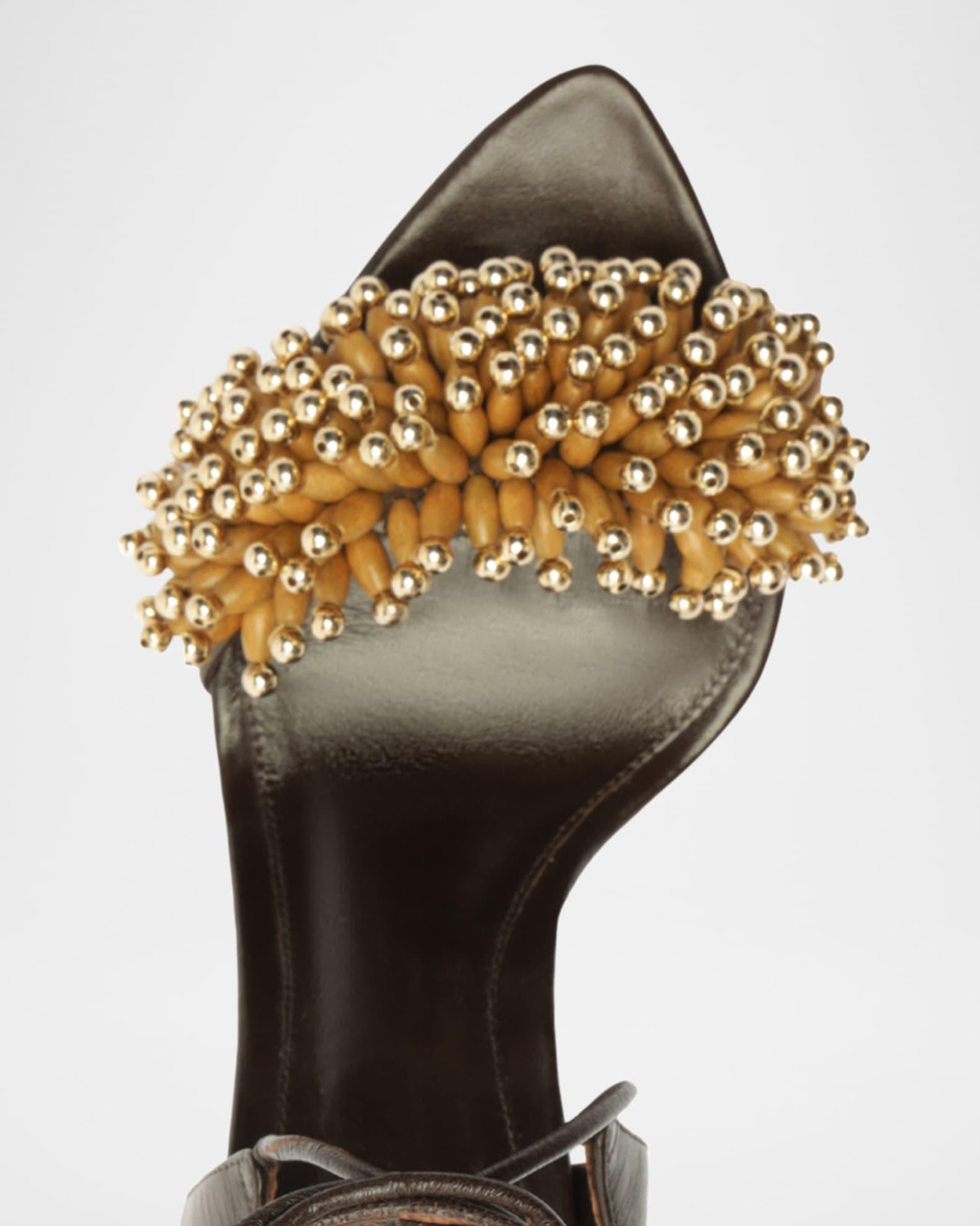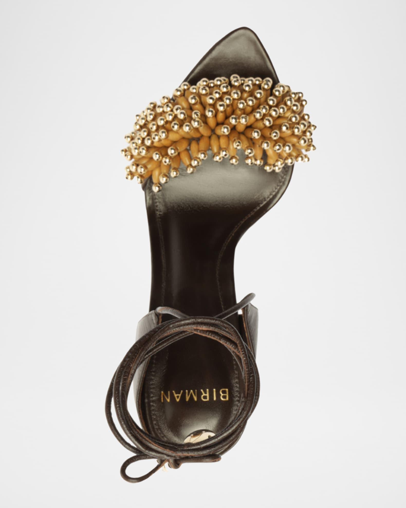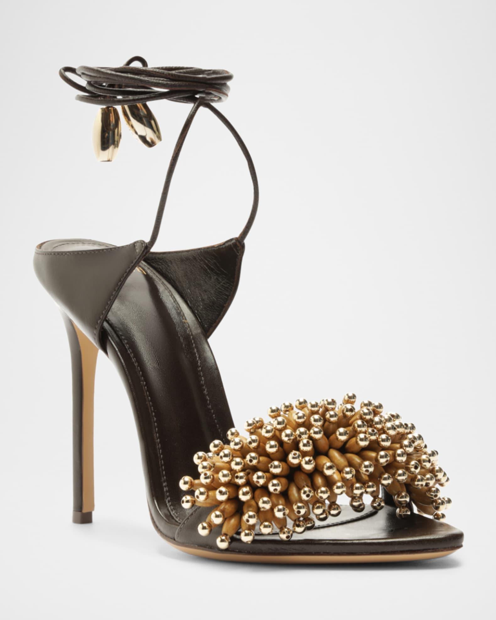 Zaya Leather Beaded Ankle-Wrap Sandals