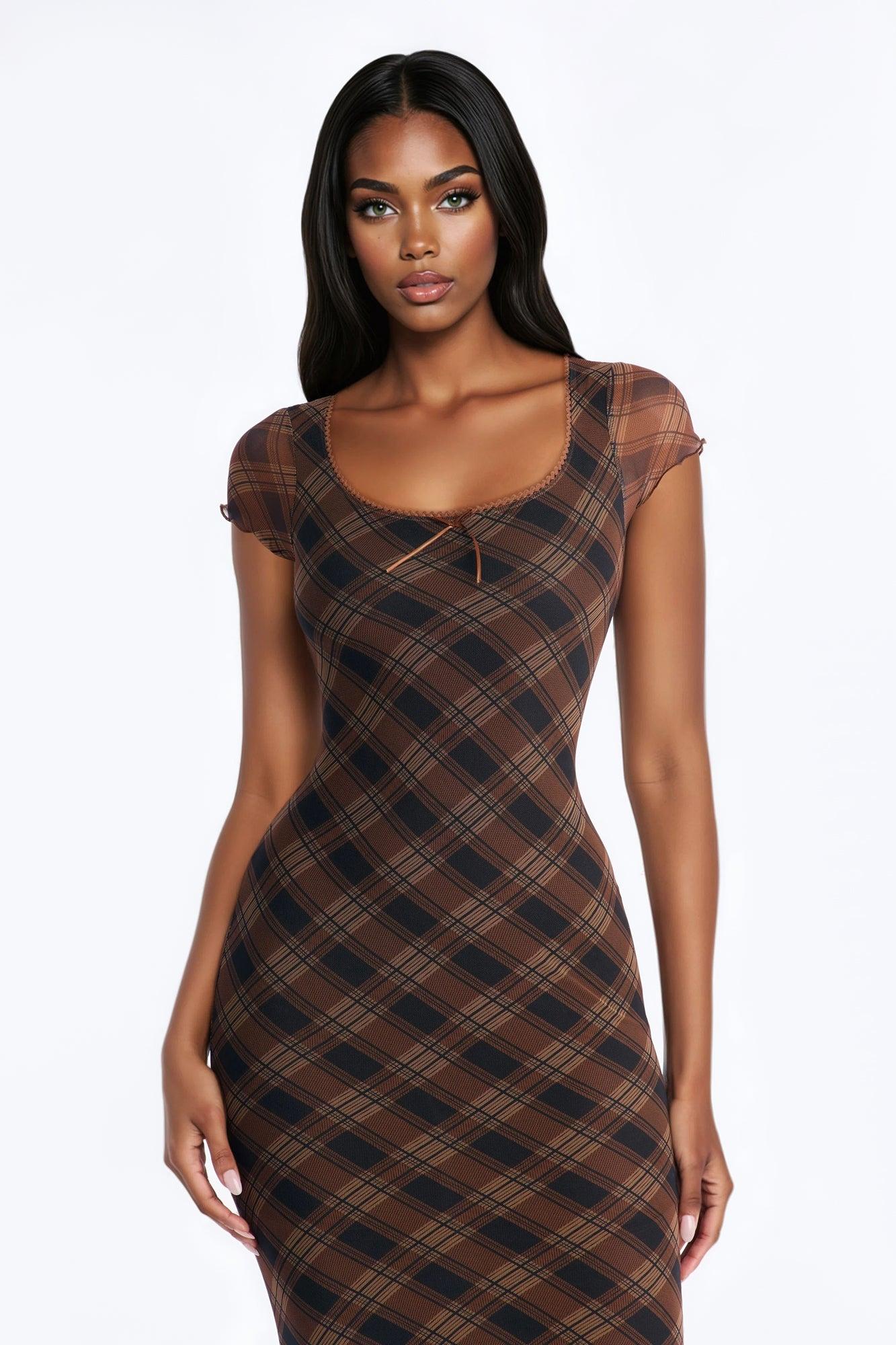 Zayla Plaid Mesh Midi Dress - Brown/combo Female