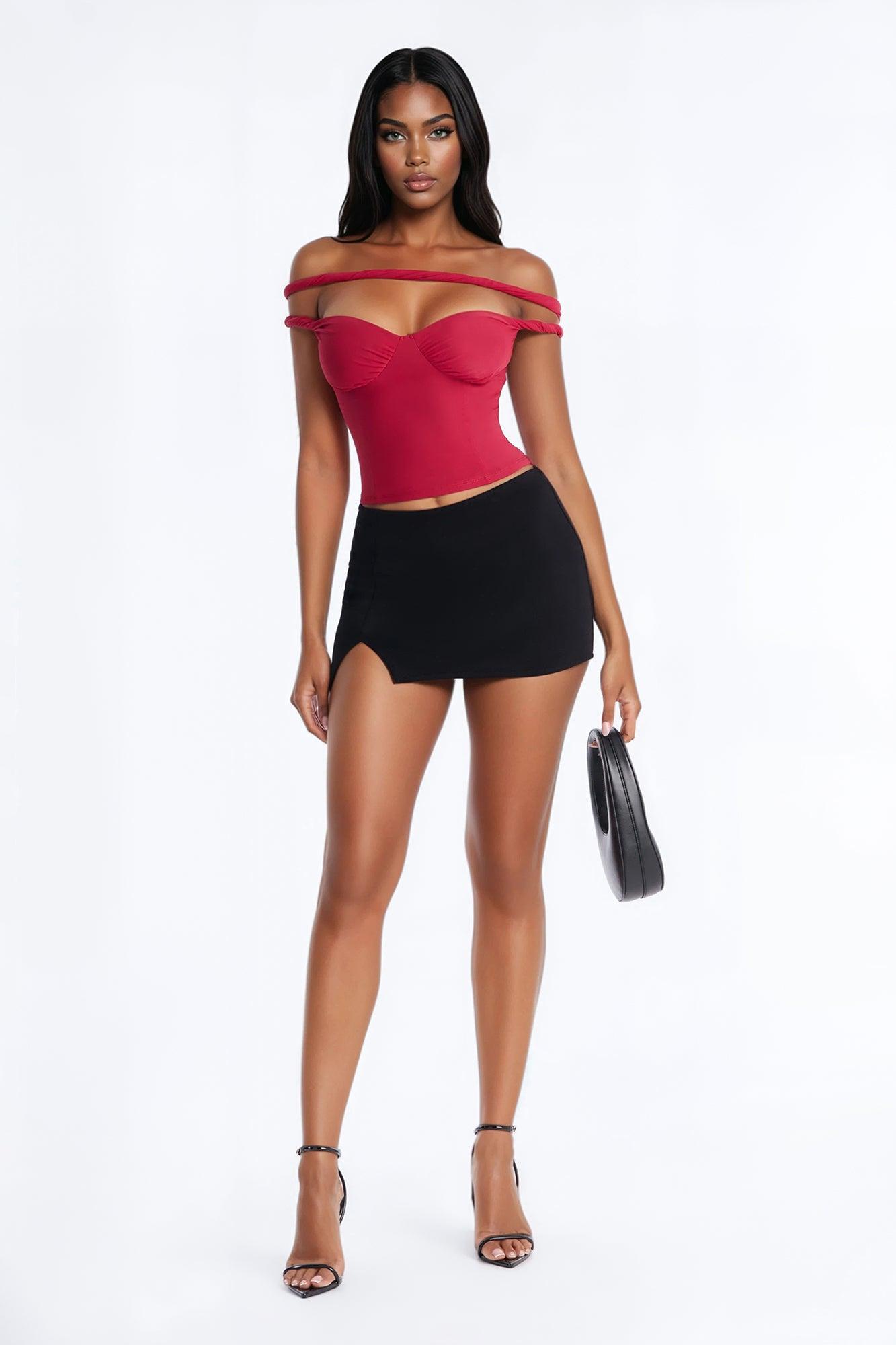 Zinnia Twist Mesh Corset Top - Red Female