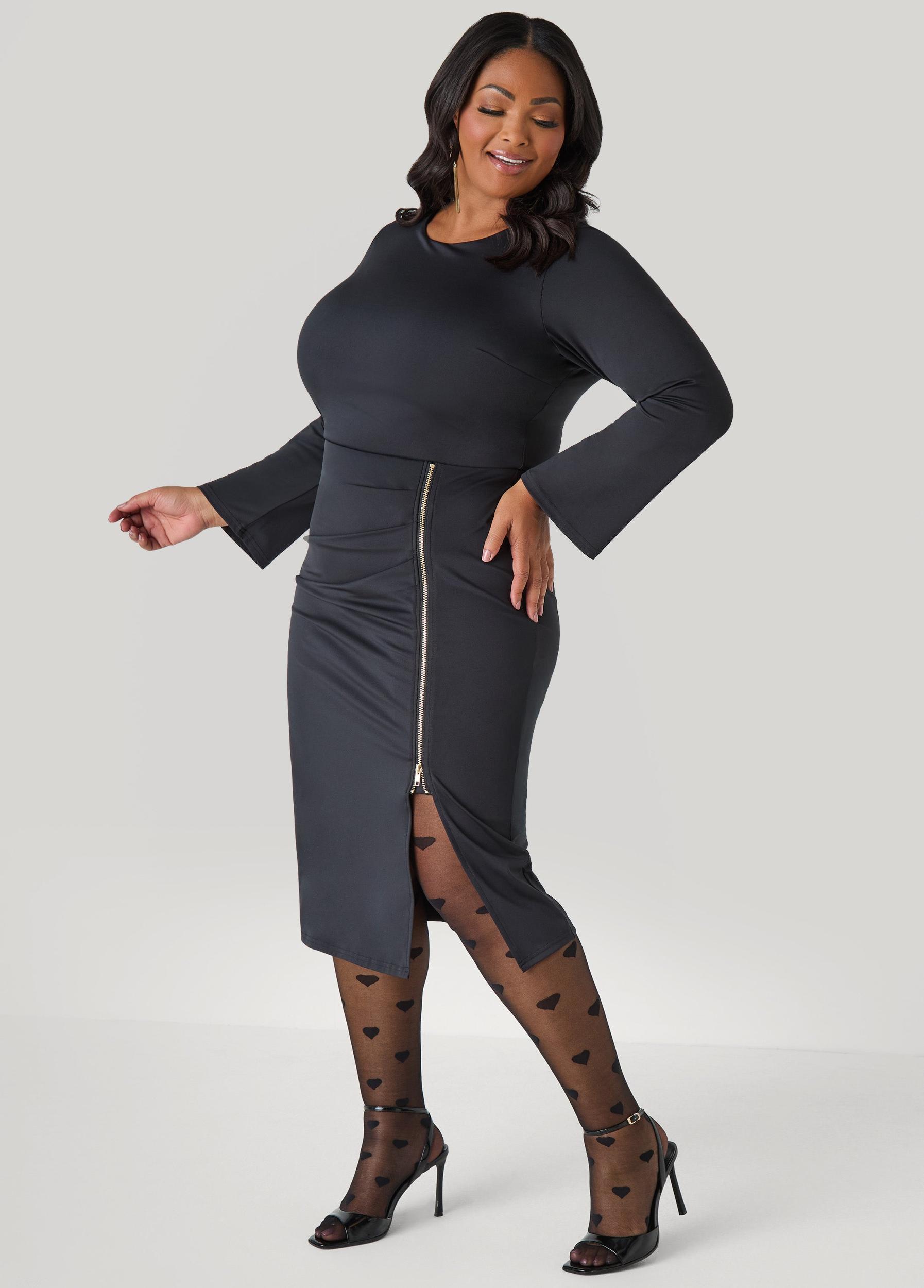 Zip Detailed Bodycon Midi Dress